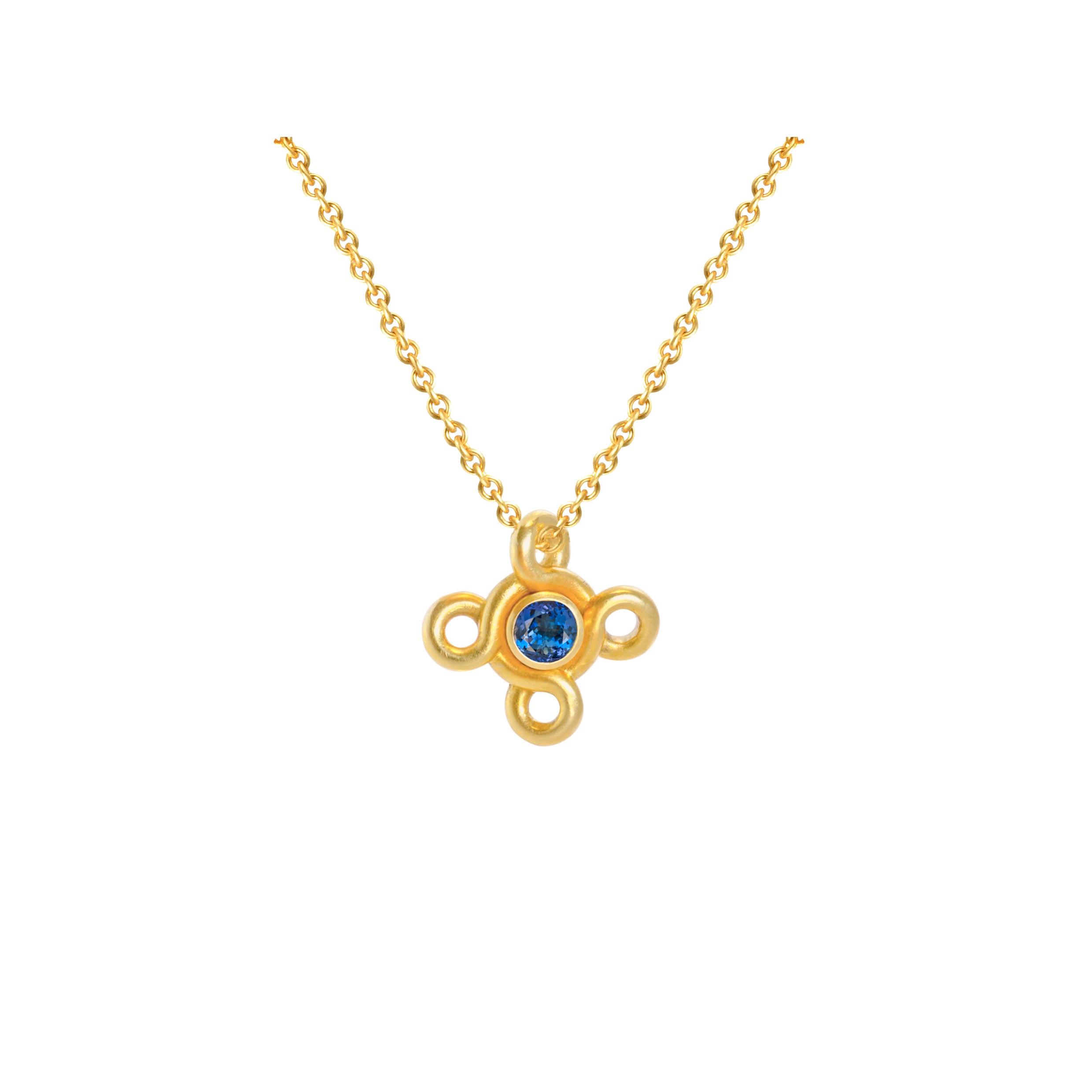 Elfenhafte Leichtigkeit! Der leuchtend blaue Saphir ist förmlich in die zarte Fassung eingewoben. Die Kette verbindet sich sanft mit dem Anhänger.