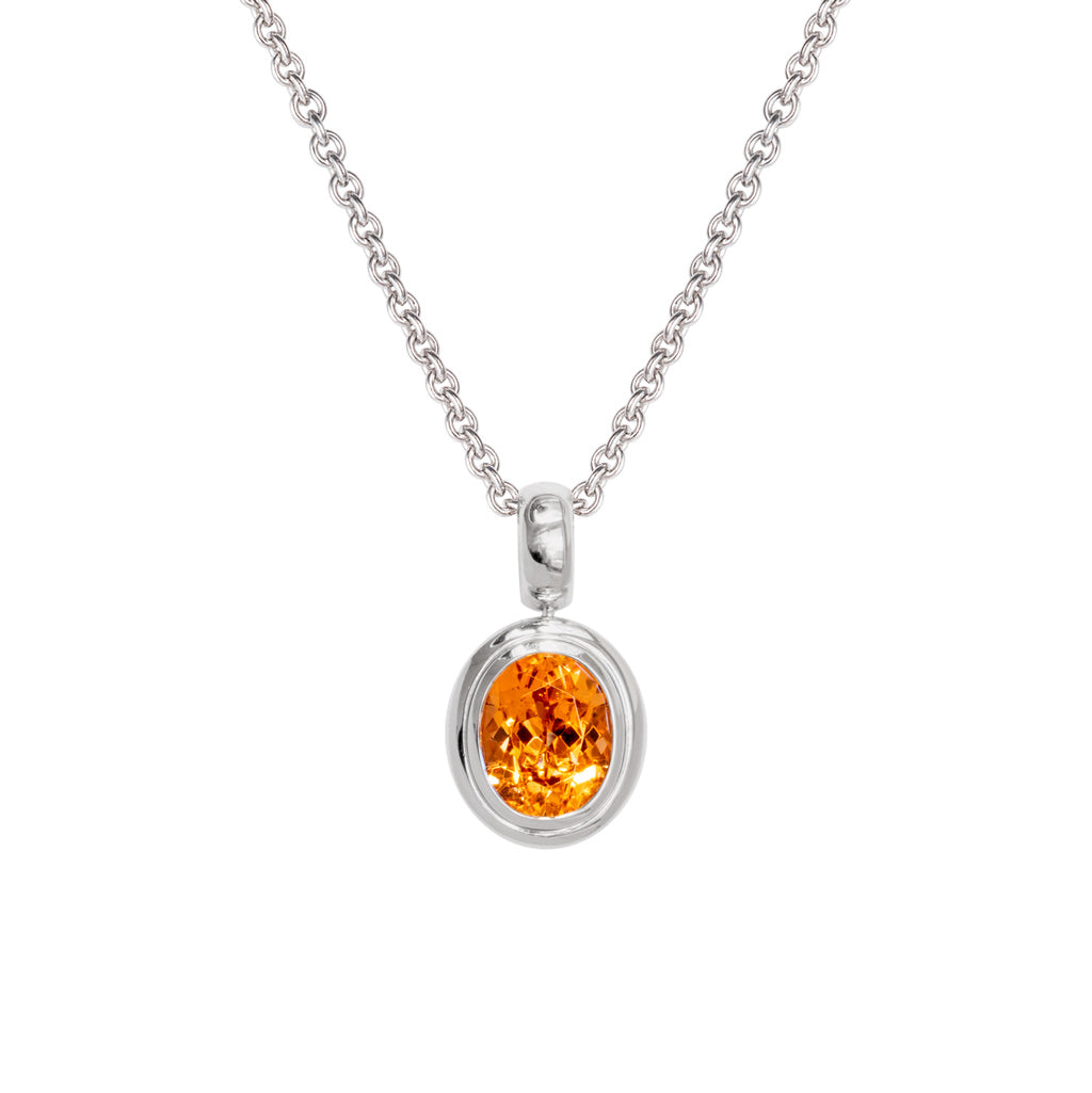 Die für Leinfelder typische doppelt gestufte Fassung setzt den orangen Mandaringranat perfekt in Szene.