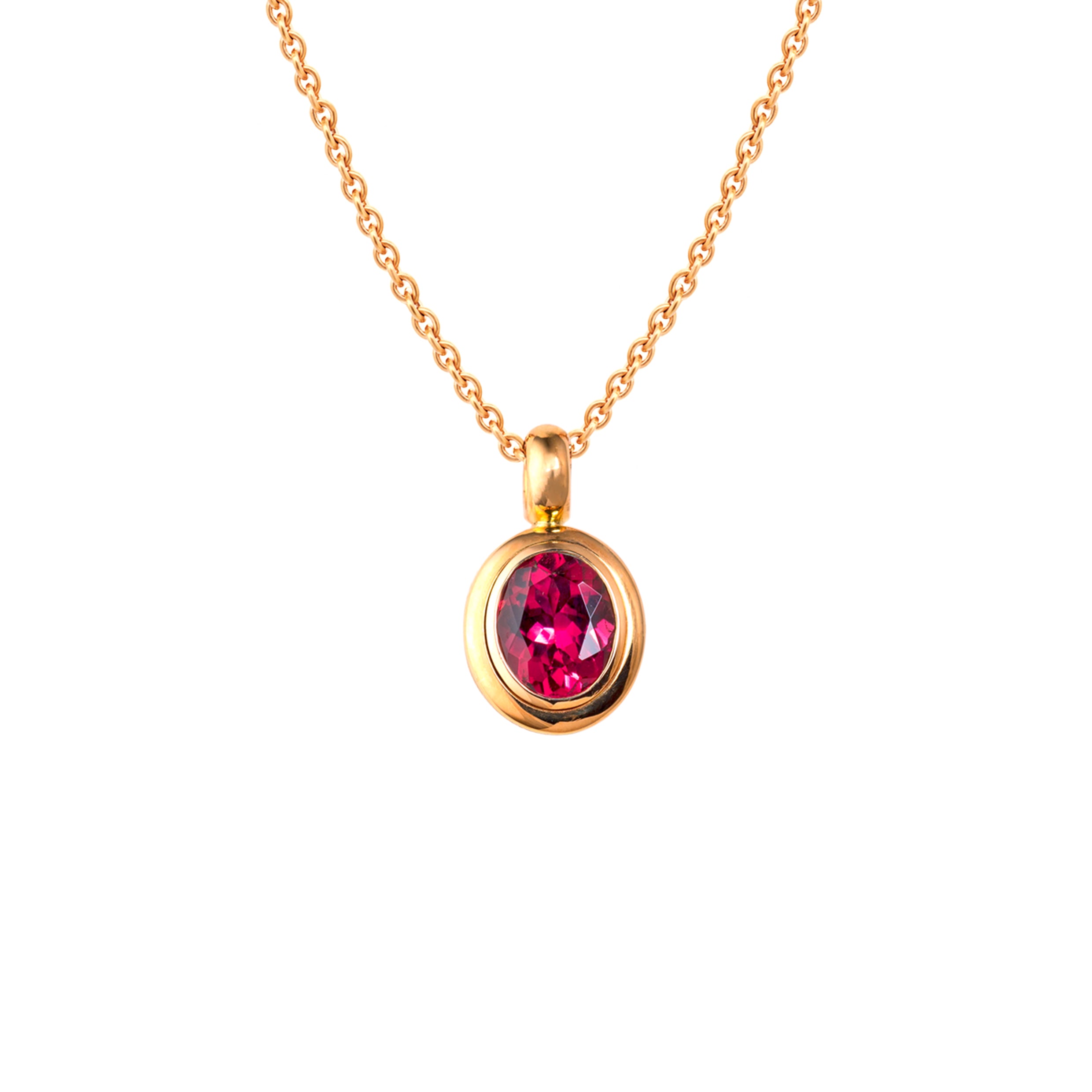 Klassisch zeitlos ist dieser Anhänger mit dem pink Turmalin. Der Facettenschliff verleiht ihm den wunderbaren Glanz.