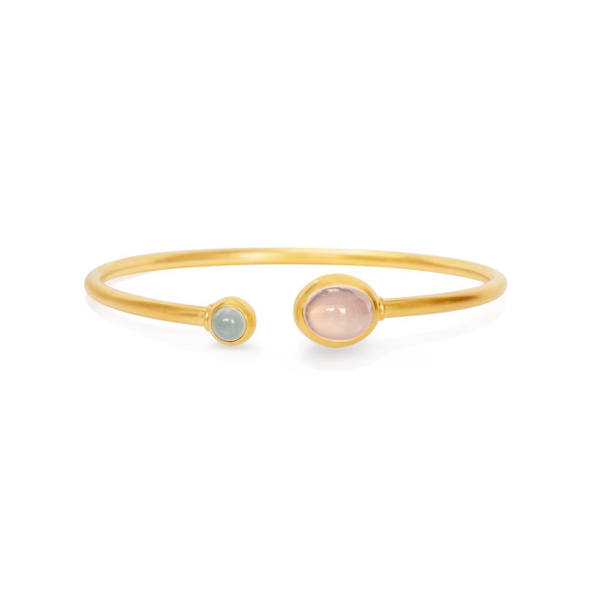 Armreif 750 Gelbgold mit Rosenquarz und Aquamarin