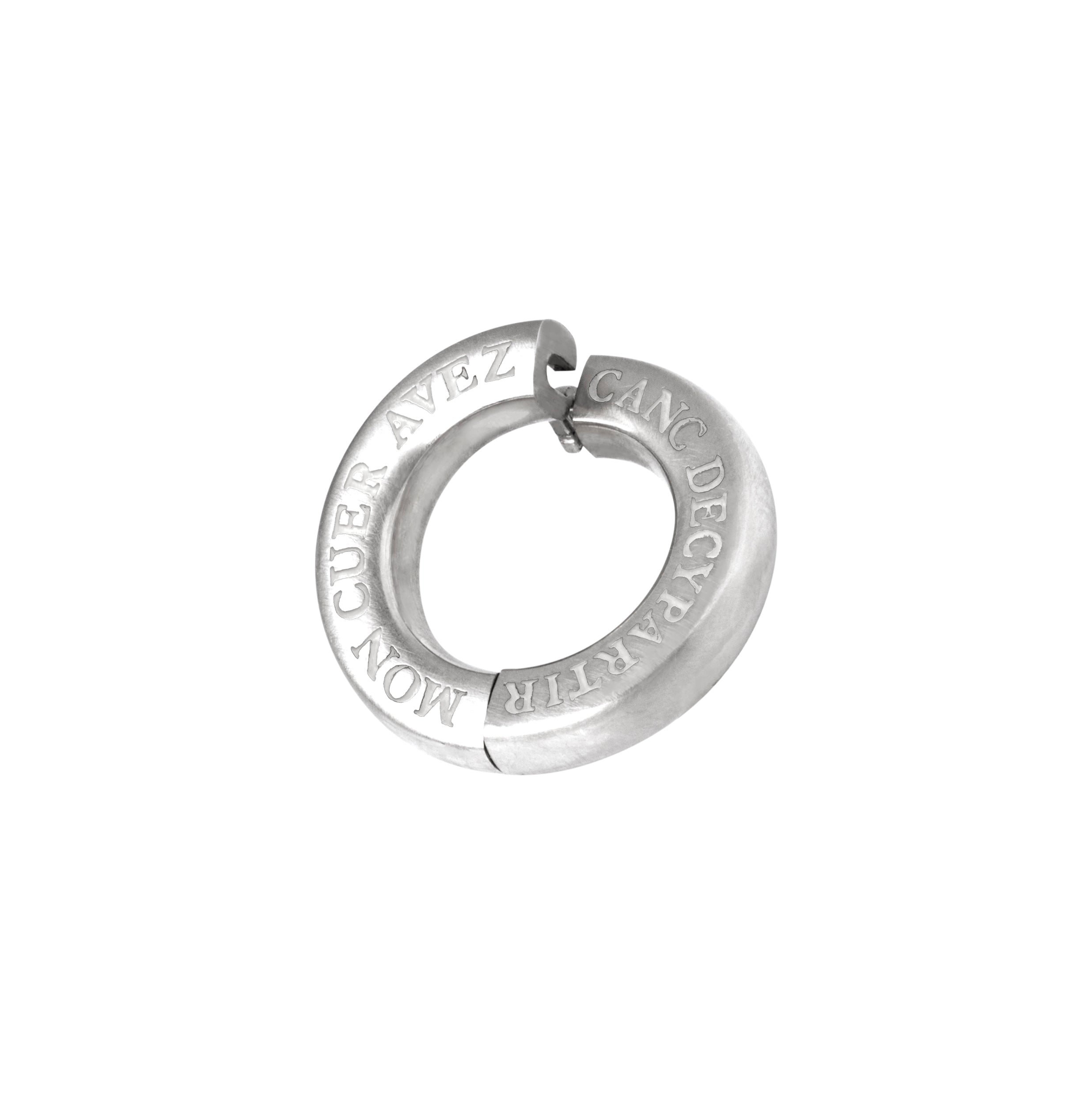 Clipöse mit Inschrift „mon cuer avez canc decypartir“ in 750 Weißgold