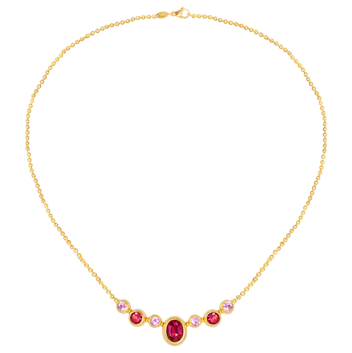 Collier 750 Gelbgold mit Rubelliten und pink Saphiren