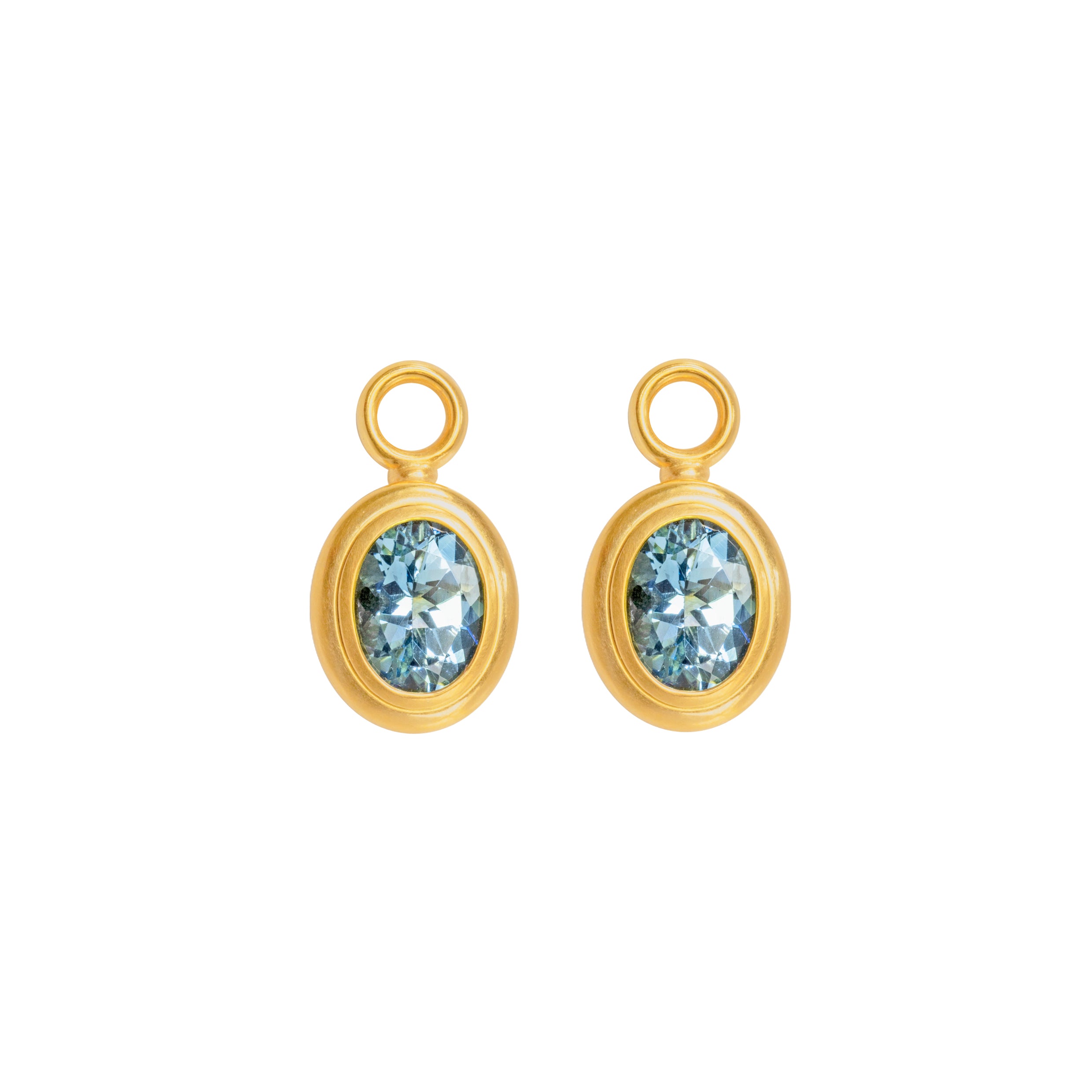 Mit diesen Einhängern aus sattem Gelbgold und himmelblauen