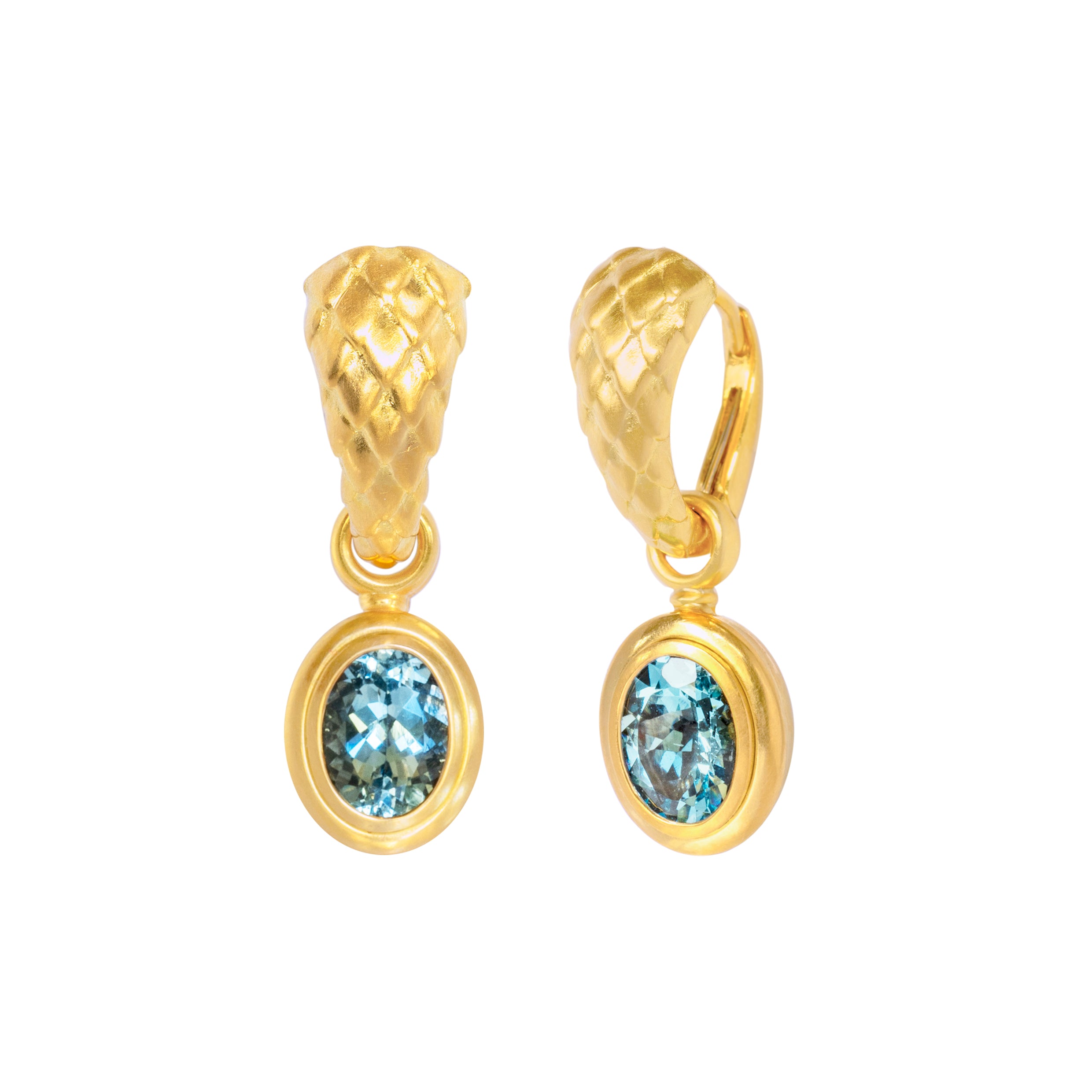 Klappcreolen 750 Gelbgold mit Drachenmuster und Aquamarin Einhängern