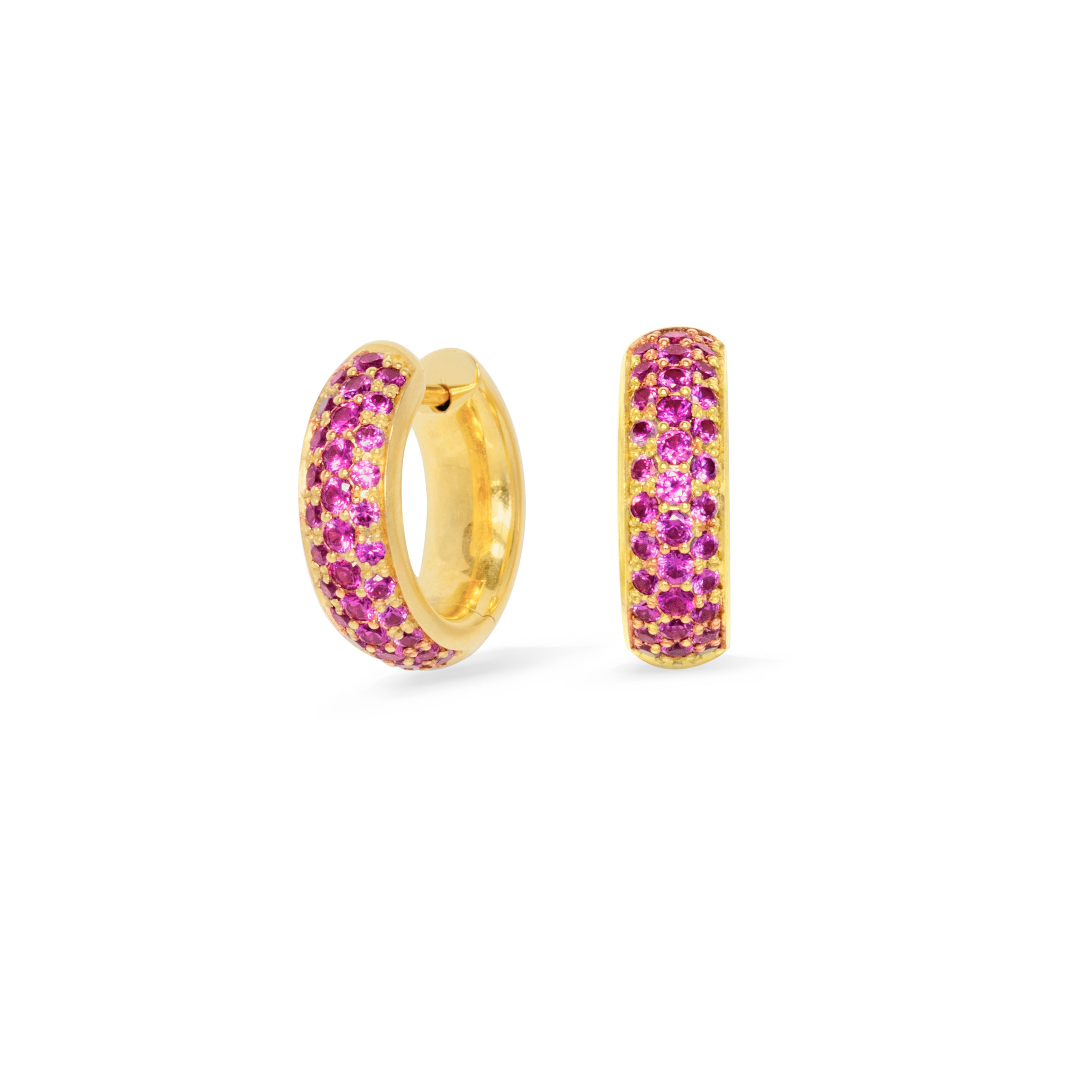 Klappcreolen 750 Gelbgold mit pink Saphiren