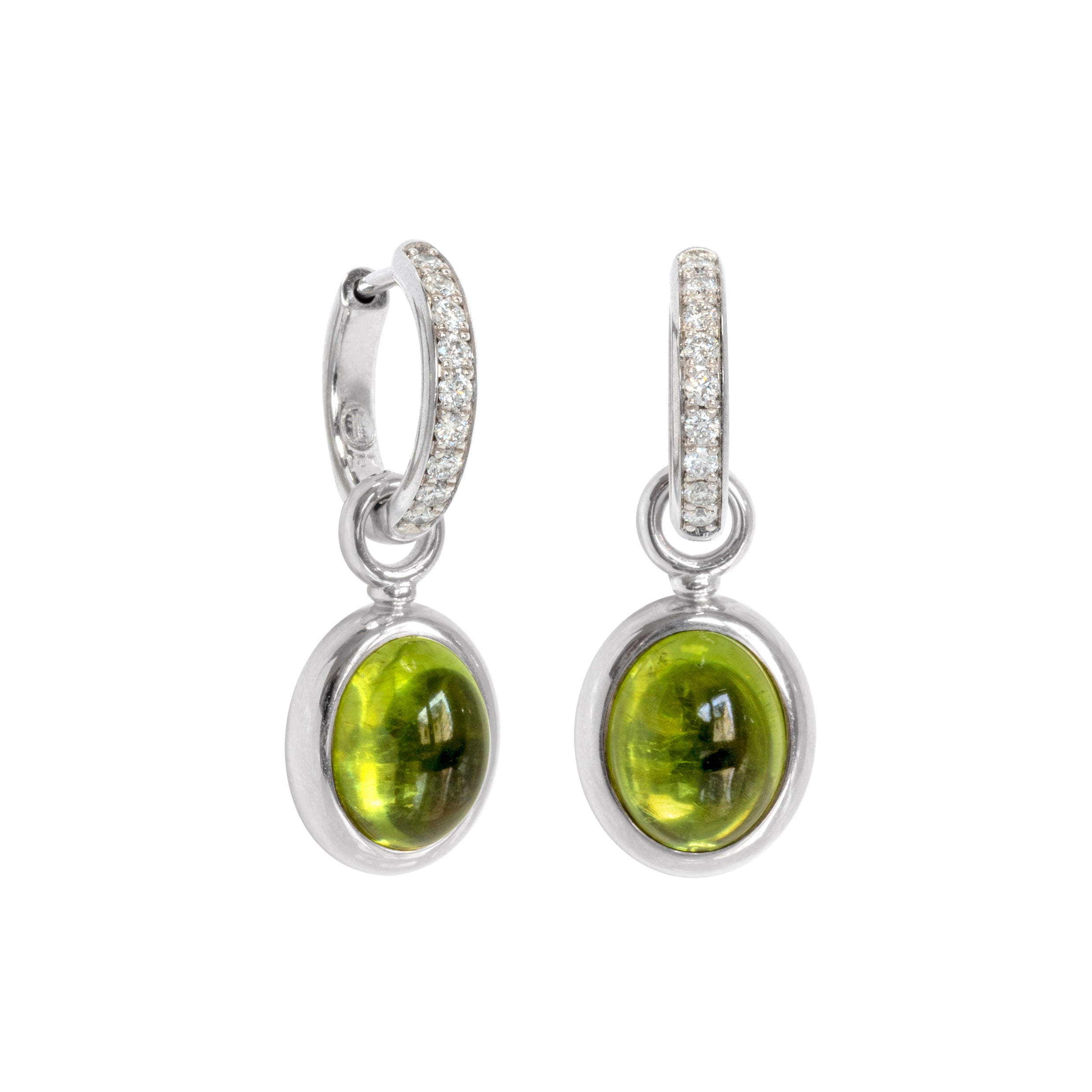 Einhänger: 750 Weißgold mit Peridot Cabochons 10 x 8 mm