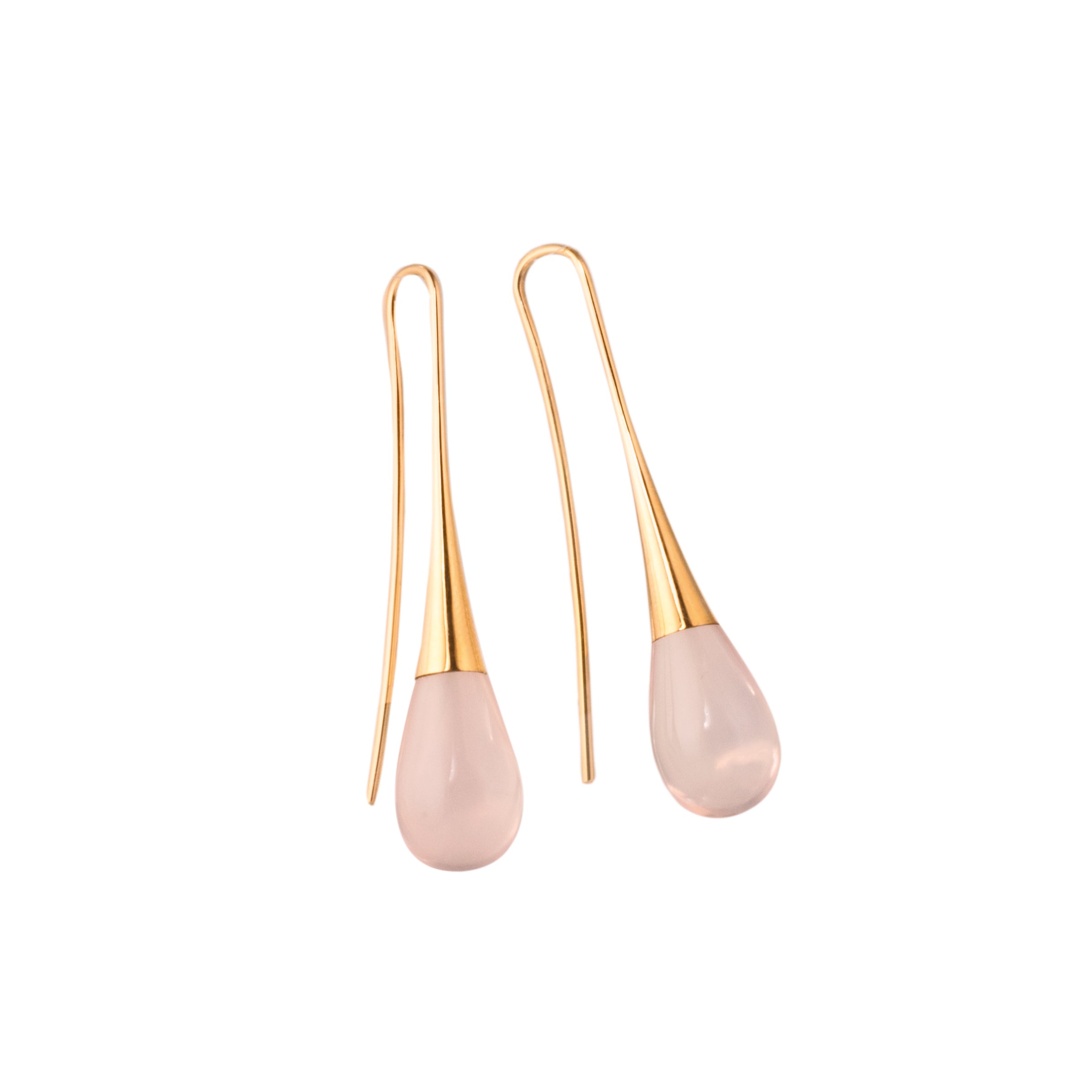 Organisch und schwungvoll sind diese Ohrhänger aus 750 Roségold mit Rosenquarz Pampeln.