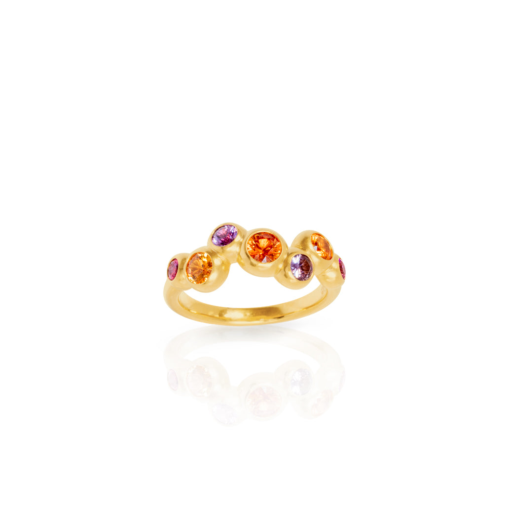Ring 750 Gelbgold mit orange, lila und pink Saphiren