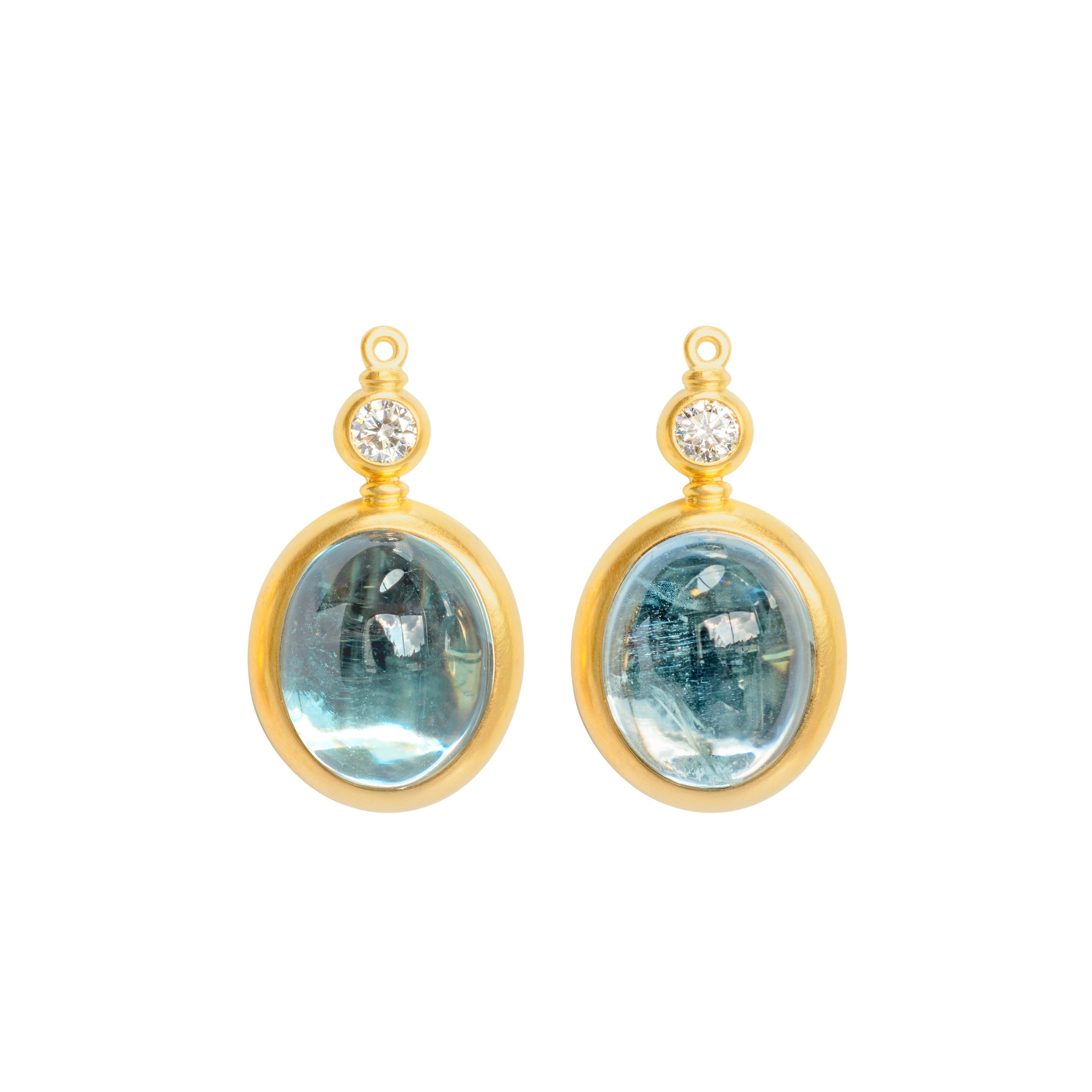 Stones: 2 Brillanten = 0,22 ct tw vsi Ø 3,0 mm und Aquamarin Cabochons 12 x 10 mm