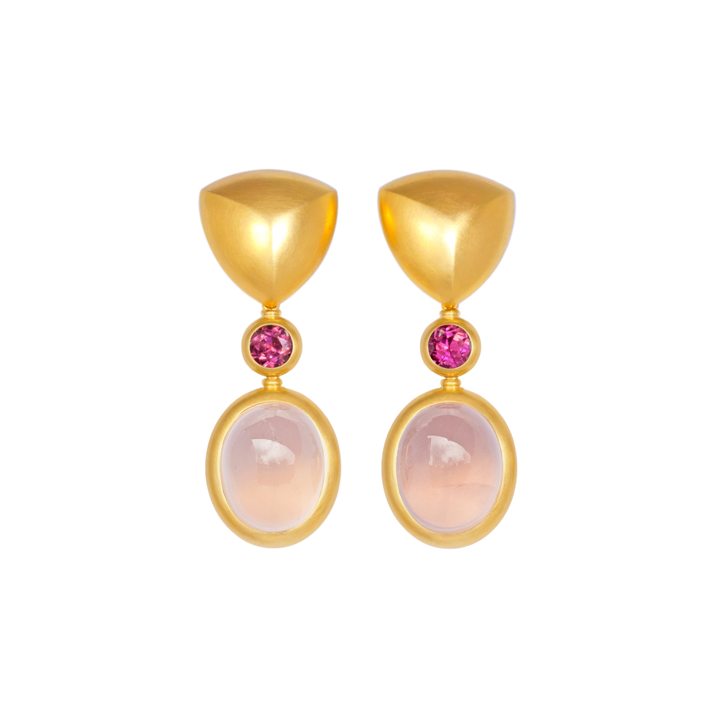 Diese Variante kombiniert goldene Kissendreiecke mit zarten Rosenquarzen und pinkfarbenen Rubelliten.