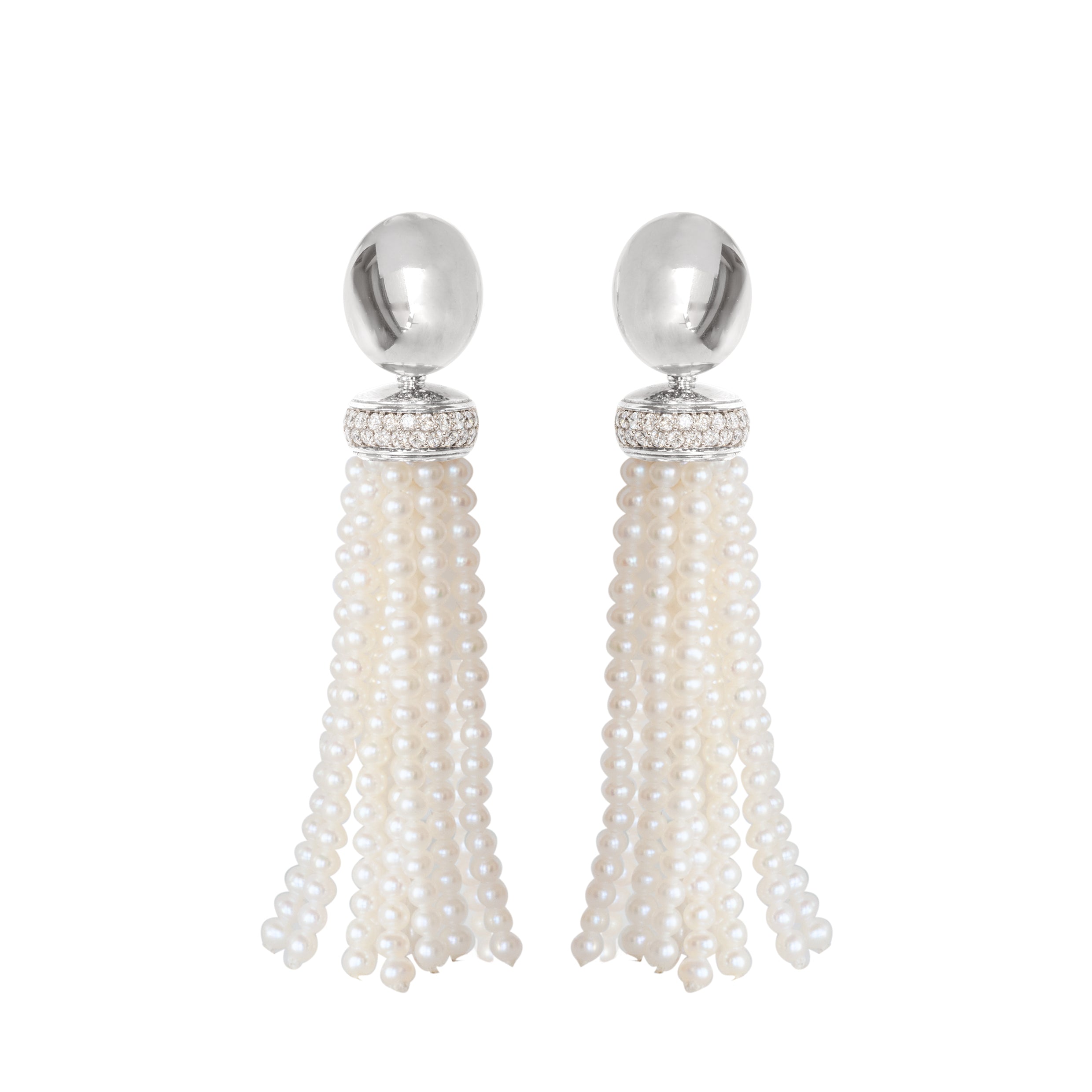 Die schlichten ovalen Oberteile bilden einen reizvollen Kontrast zu den üppigen Perlquasten.