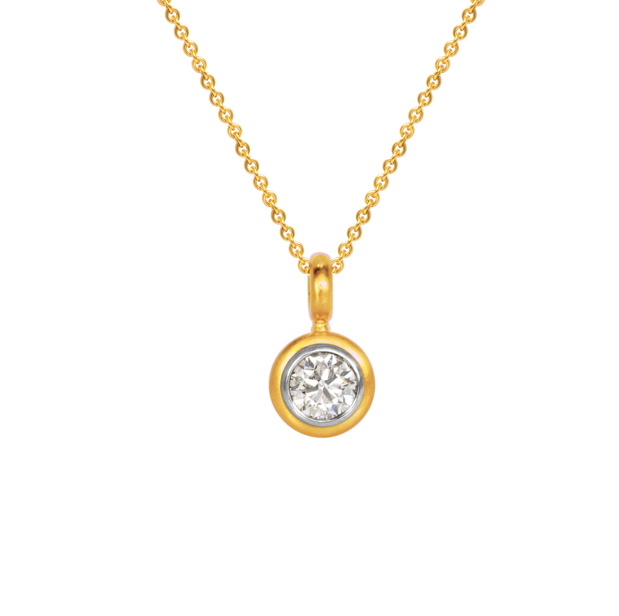 Die Fassung verjüngt sich stufenförmig und verleiht dem Anhänger seinen besonderen Reiz. Die polierte Innenfassung setzt den Brillant optimal in Szene.