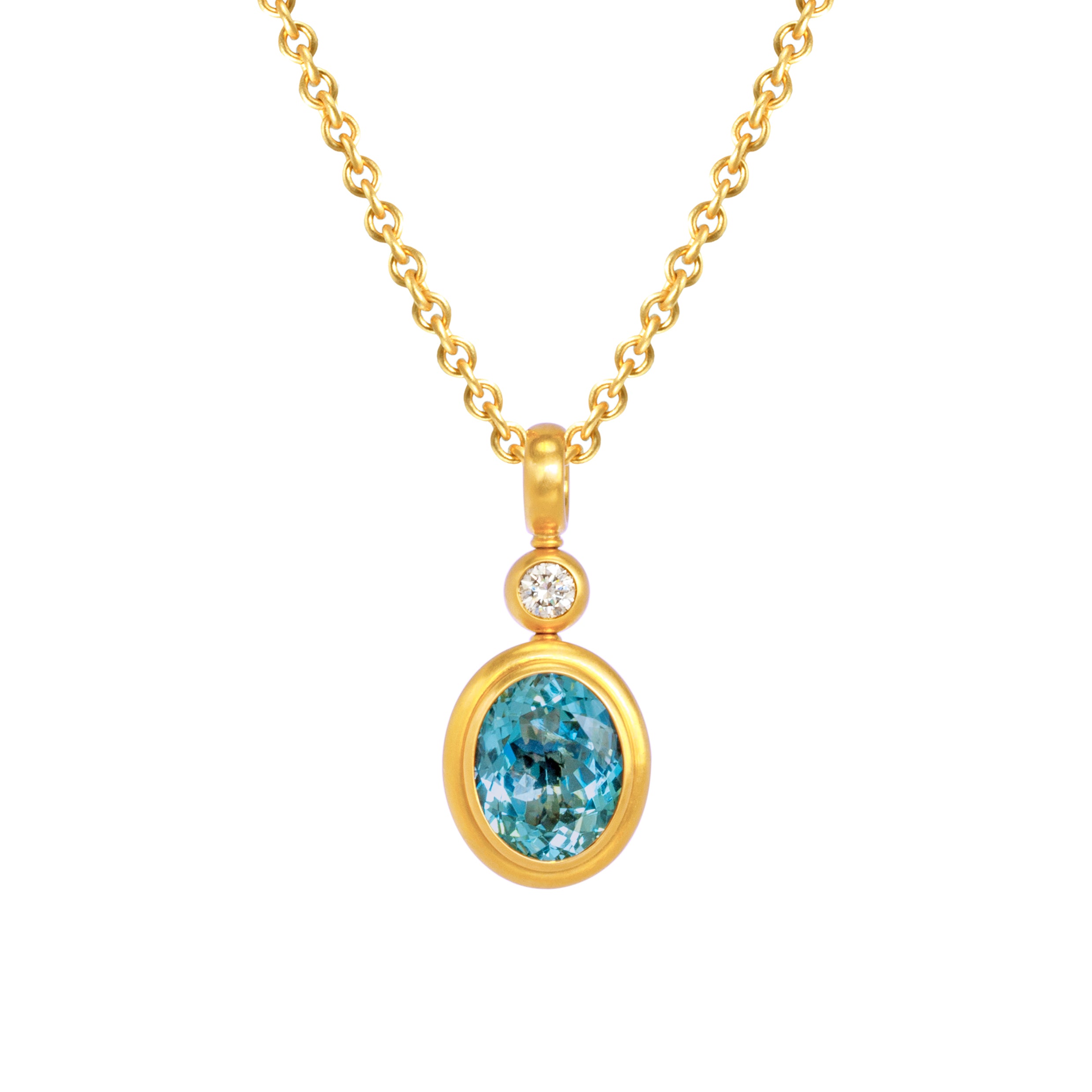 Klassisch zeitlos ist dieser Anhänger mit dem feinen Aquamarin.