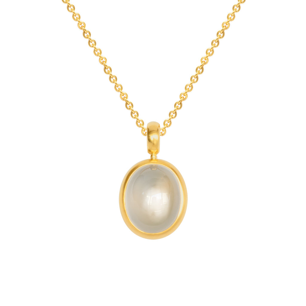 Die schlichte Fassung betont die Schönheit des geheimnisvoll schimmernden Mondsteines.