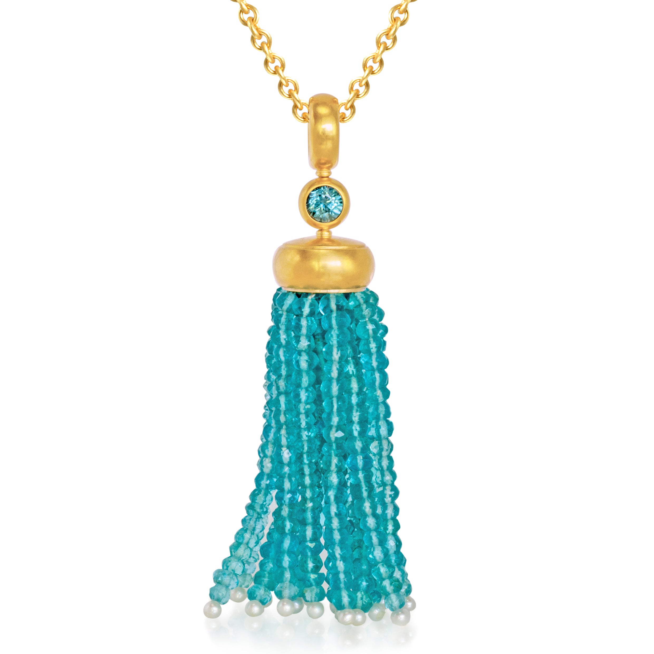 Anhänger 750 Gelbgold mit Starlit, Apatitsträngen und Perlchen