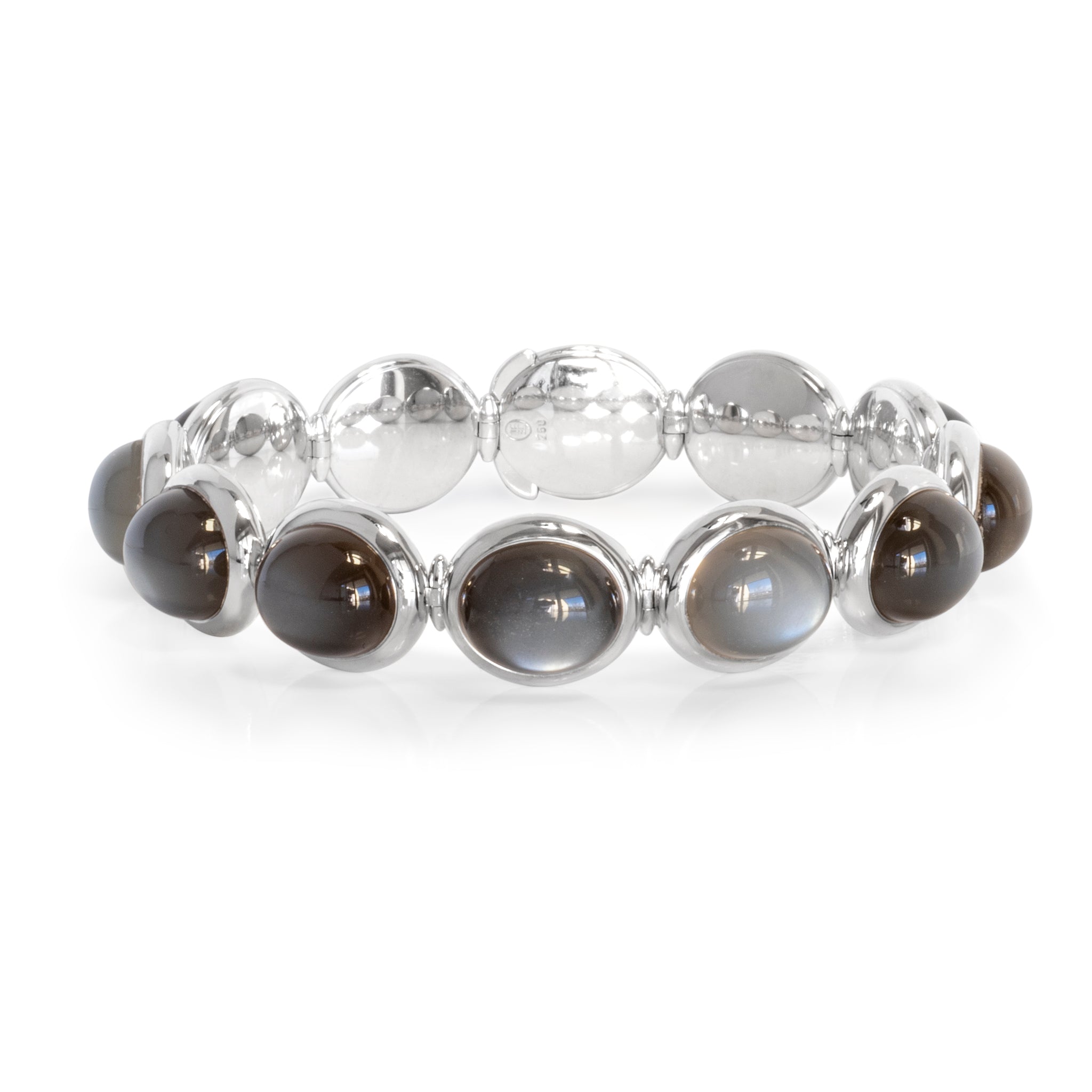 Armband 750 Weißgold mit 12 anthrazitfarbenen Mondstein Cabochons