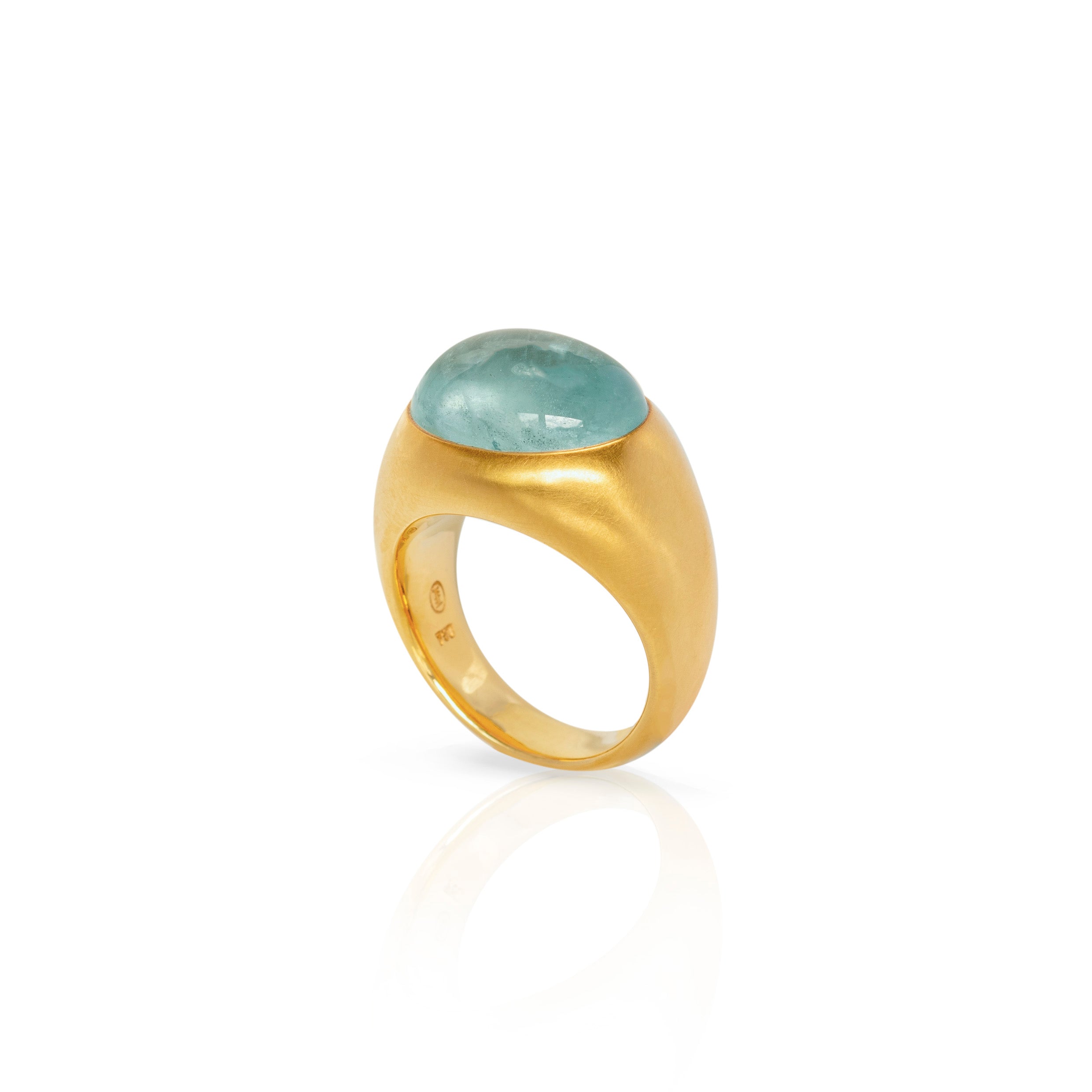 Bandring 750 Gelbgold mit Aquamarin Cabochon