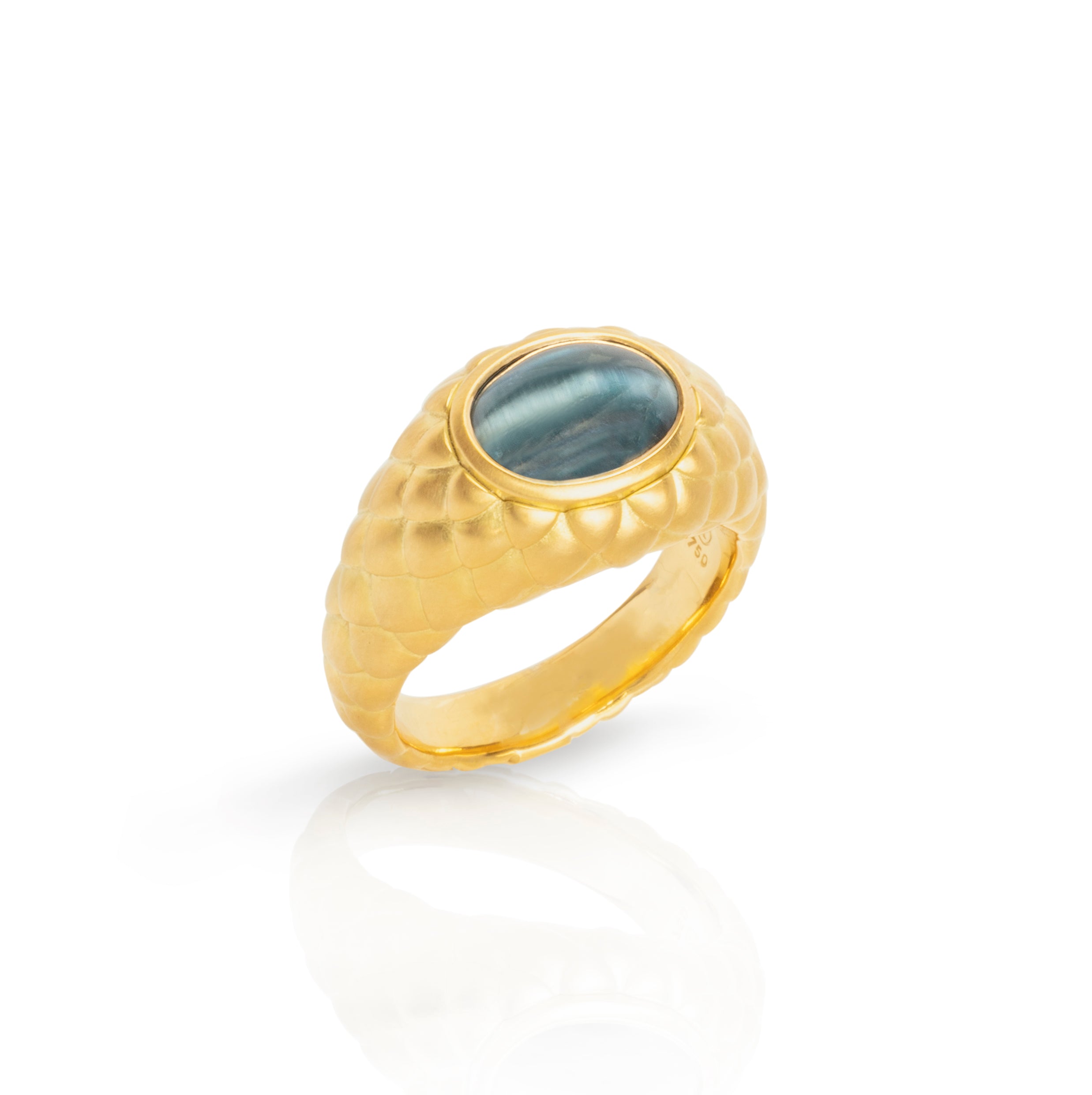 Entdecken Sie die mystische Anziehungskraft unserer Glücksdrachen-Kollektion. Die einzigartige Schuppenstruktur, die die Stärke eines Drachen symbolisiert, macht jedes Schmuckstück zu einem besonderen Talisman. Das Turmalin- Katzenauge betont die geheimnisvolle Wirkung.