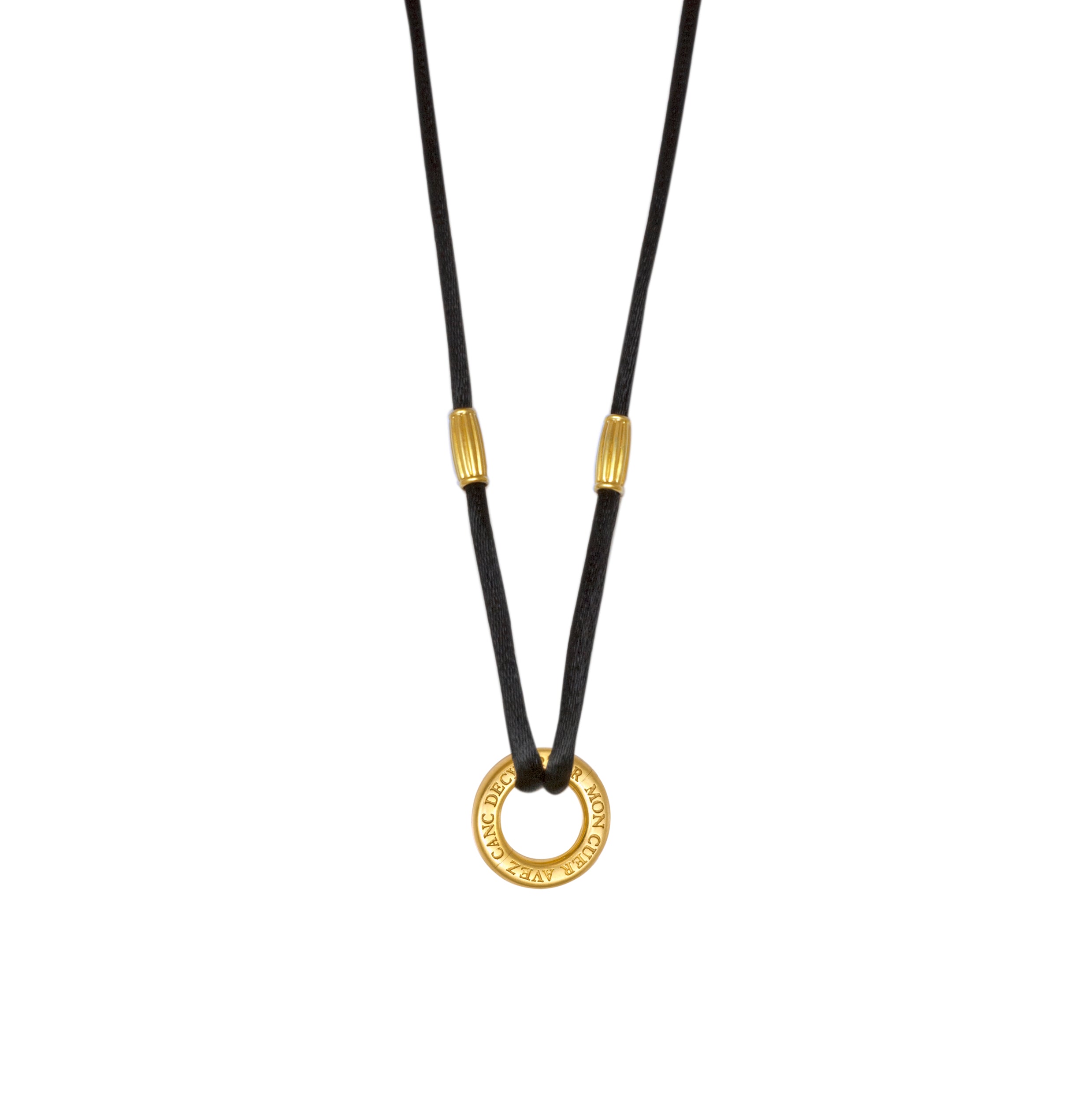 Das Satinband mit den Hülsen aus 750 Gelbgold ist die Basis