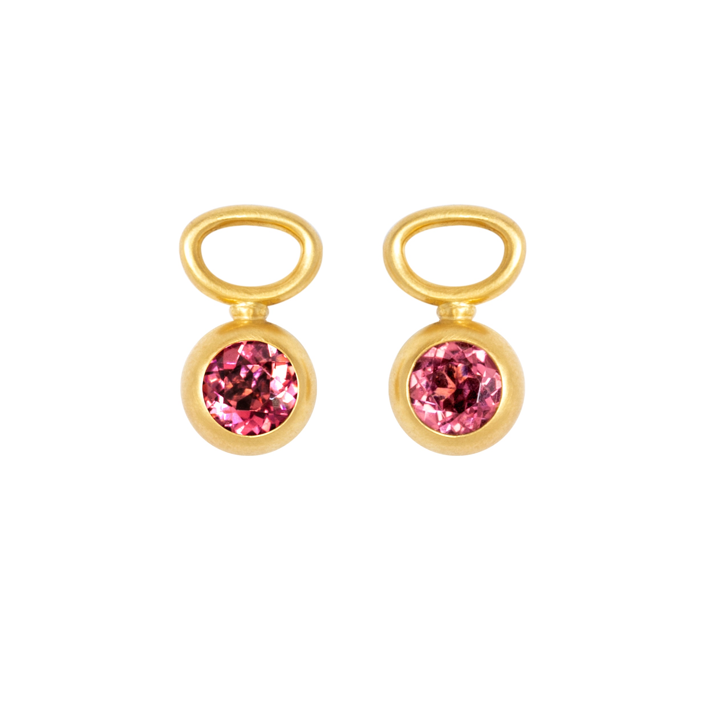 Die Kombination aus warmem Gelbgold mit funkelnden Rubelliten verleihen Ihren Creolen den besonderen Reiz.