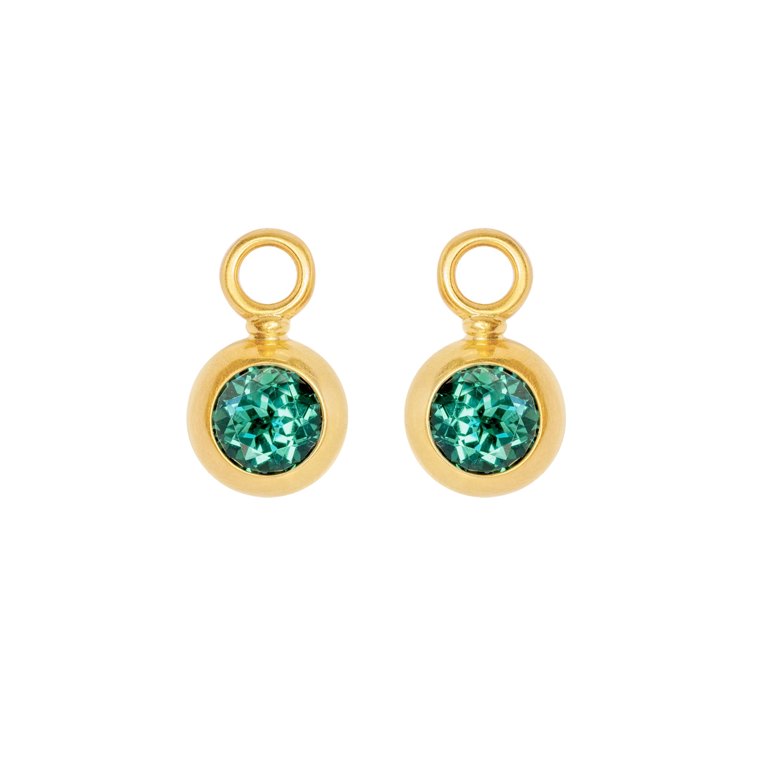 Die Kombination aus warmem Gelbgold und den leuchtenden Turmalinen verleiht den Creolen den besonderen Reiz.