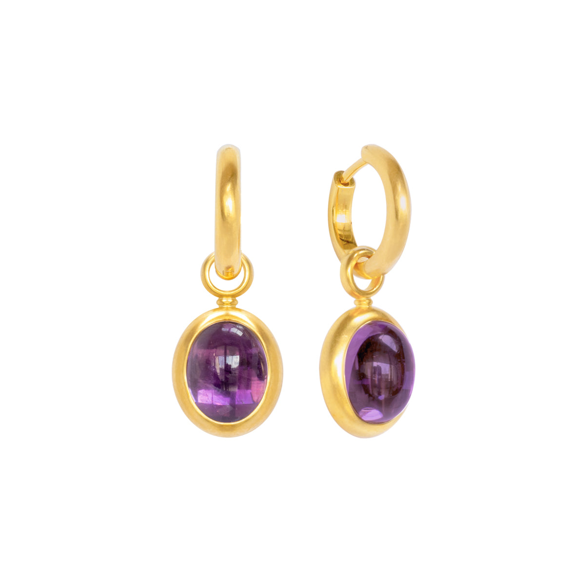 Die abnehmbaren Einhänger mit den Amethyst Cabochons sind eine geschmackvolle Ergänzung.