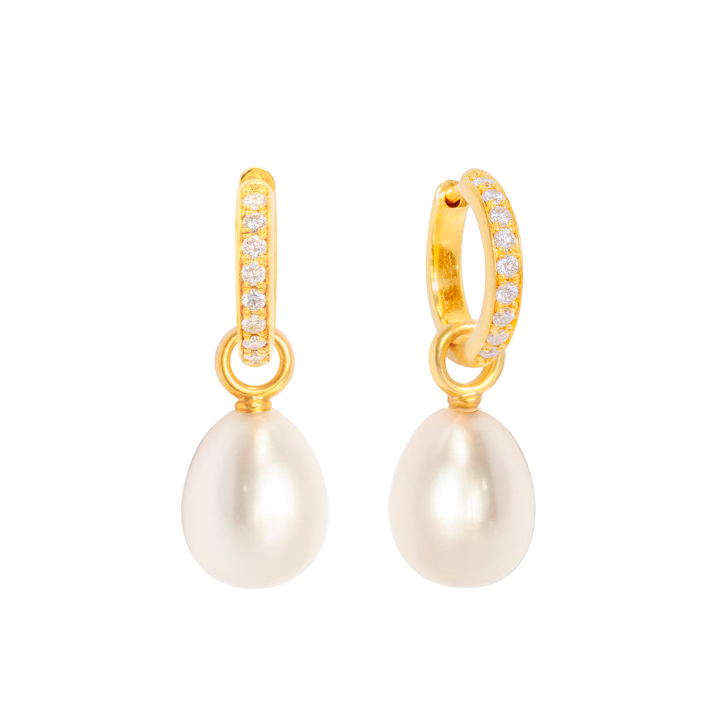 Die Einhänger mit den zarten Perltropfen sind eine edle Ergänzung.