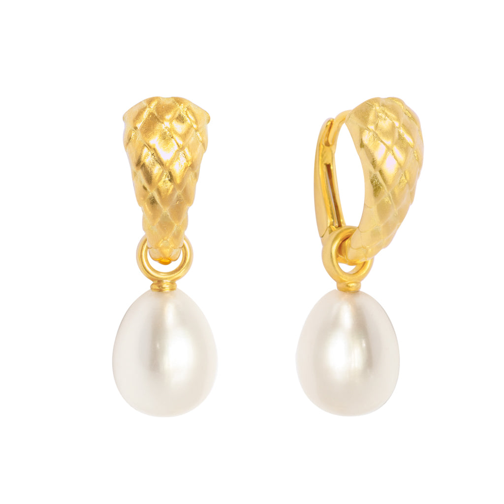 Die Oberfläche der Klappcreolen ist mit der Struktur unseres Glücksdrachen versehen. Die Einhänger mit den zart schimmernden Perlen sind eine zauberhafte Ergänzung.