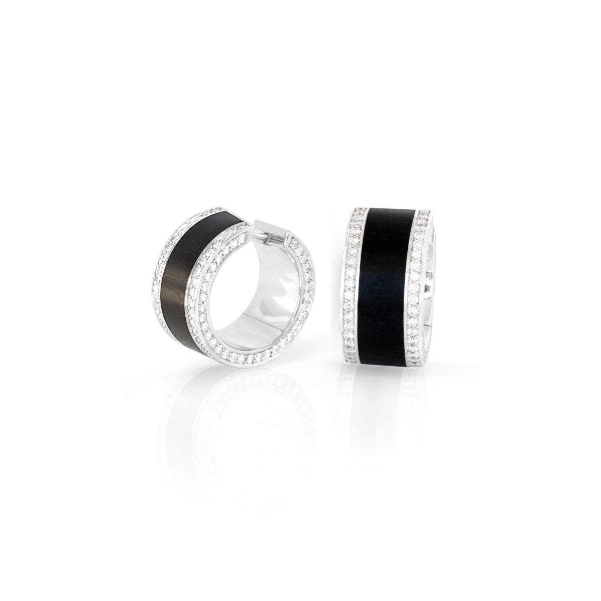 Klappcreolen 750 Weißgold mit Brillanten und Ebenholz