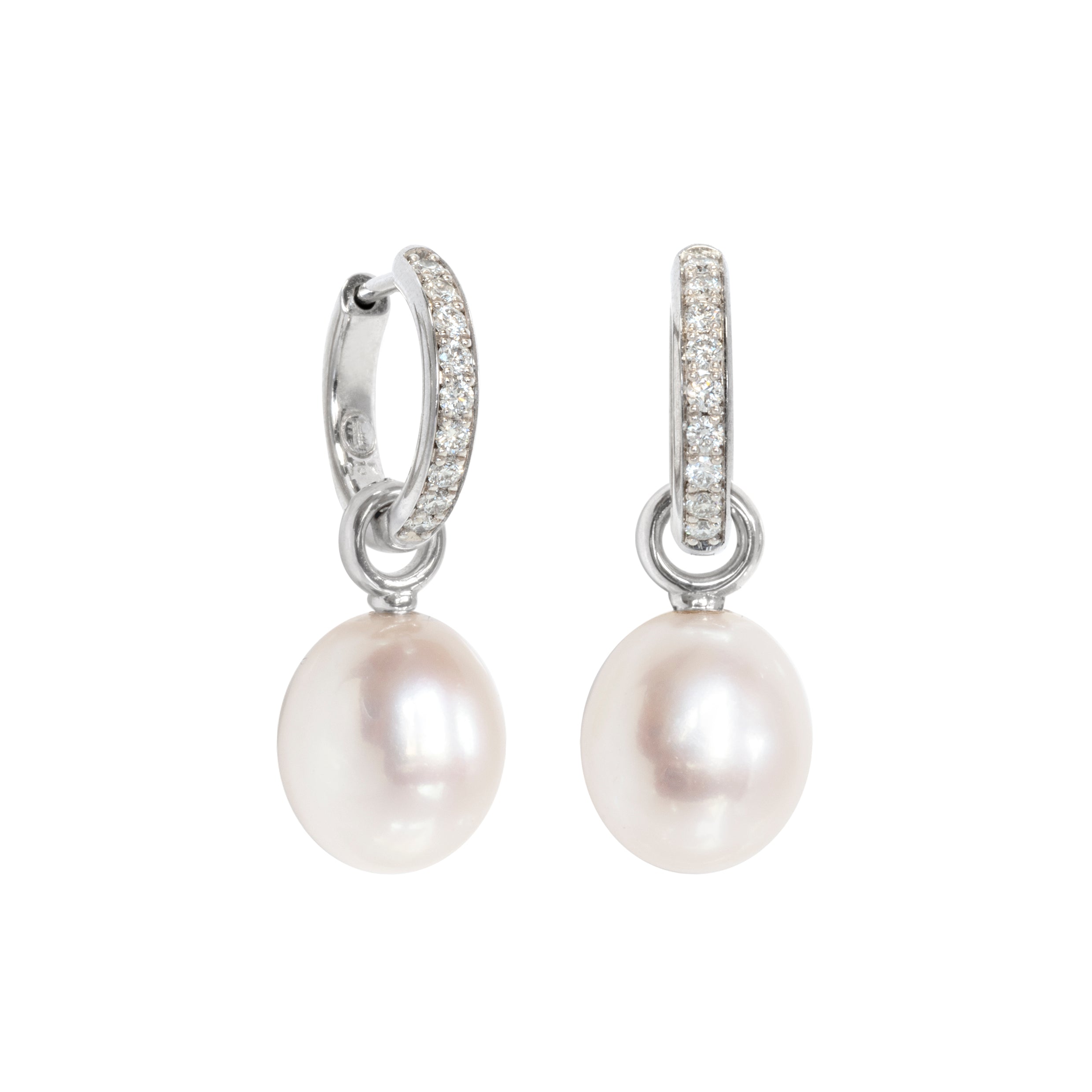 Klappcreolen 750 Weißgold mit Brillanten und Perleinhängern