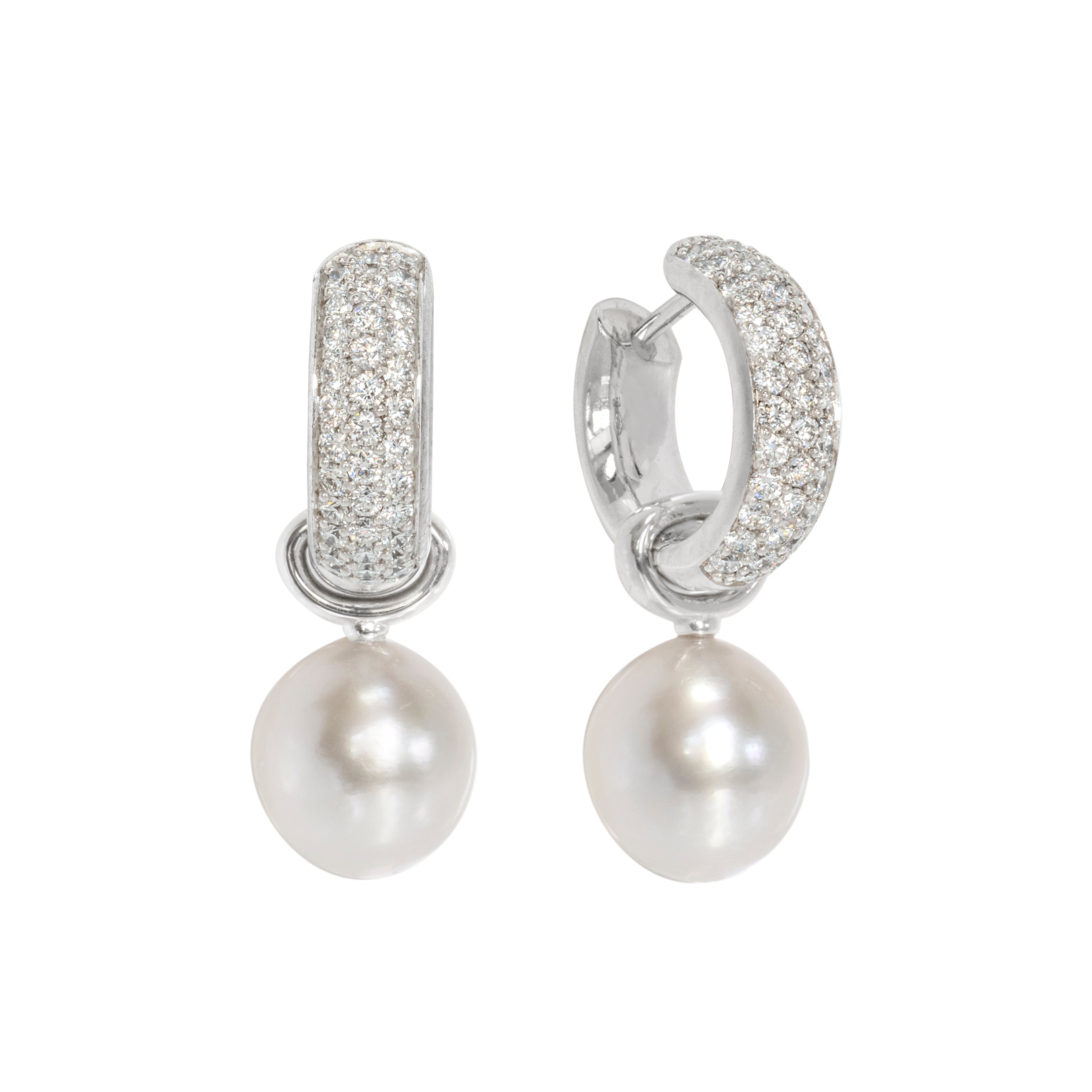 Klappcreolen 750 Weißgold mit Brillanten und Perleinhängern