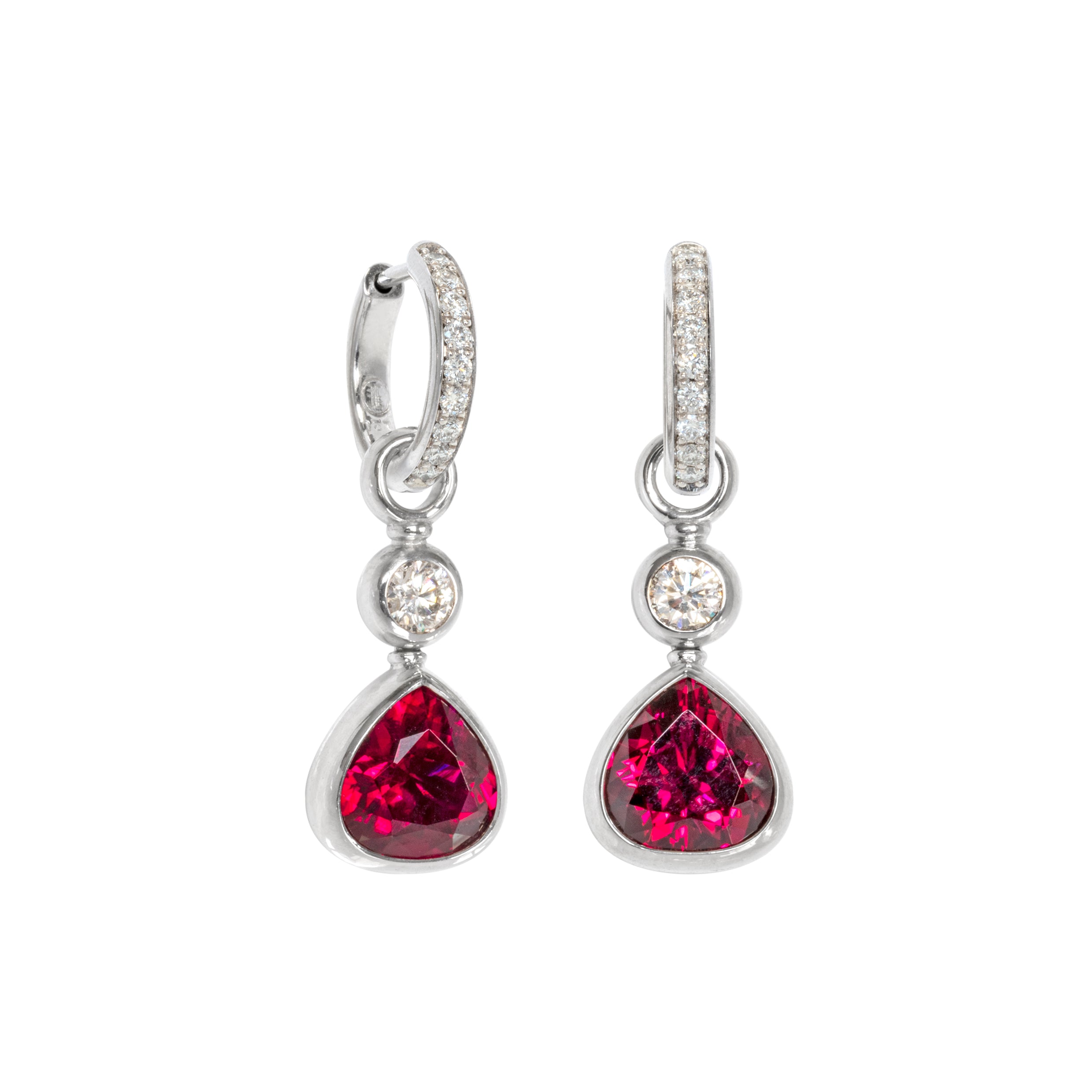 Die Einhänger mit Brillanten und facettierten Rubellittropfen sind eine edle Ergänzung.