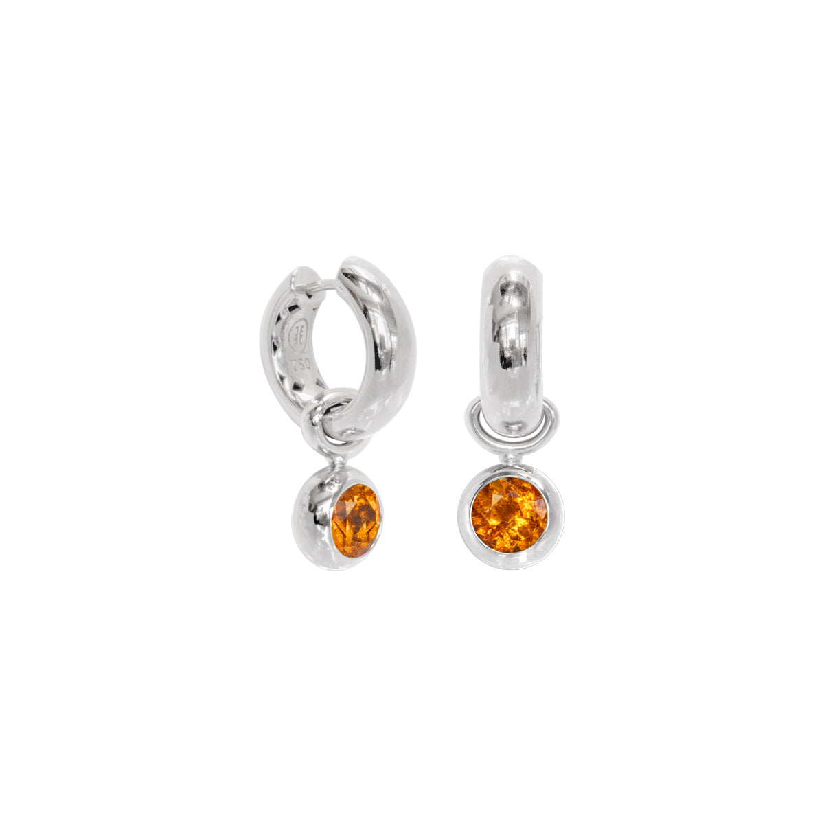 Klappcreolen 750 Weißgold mit Mandaringranat Einhängern