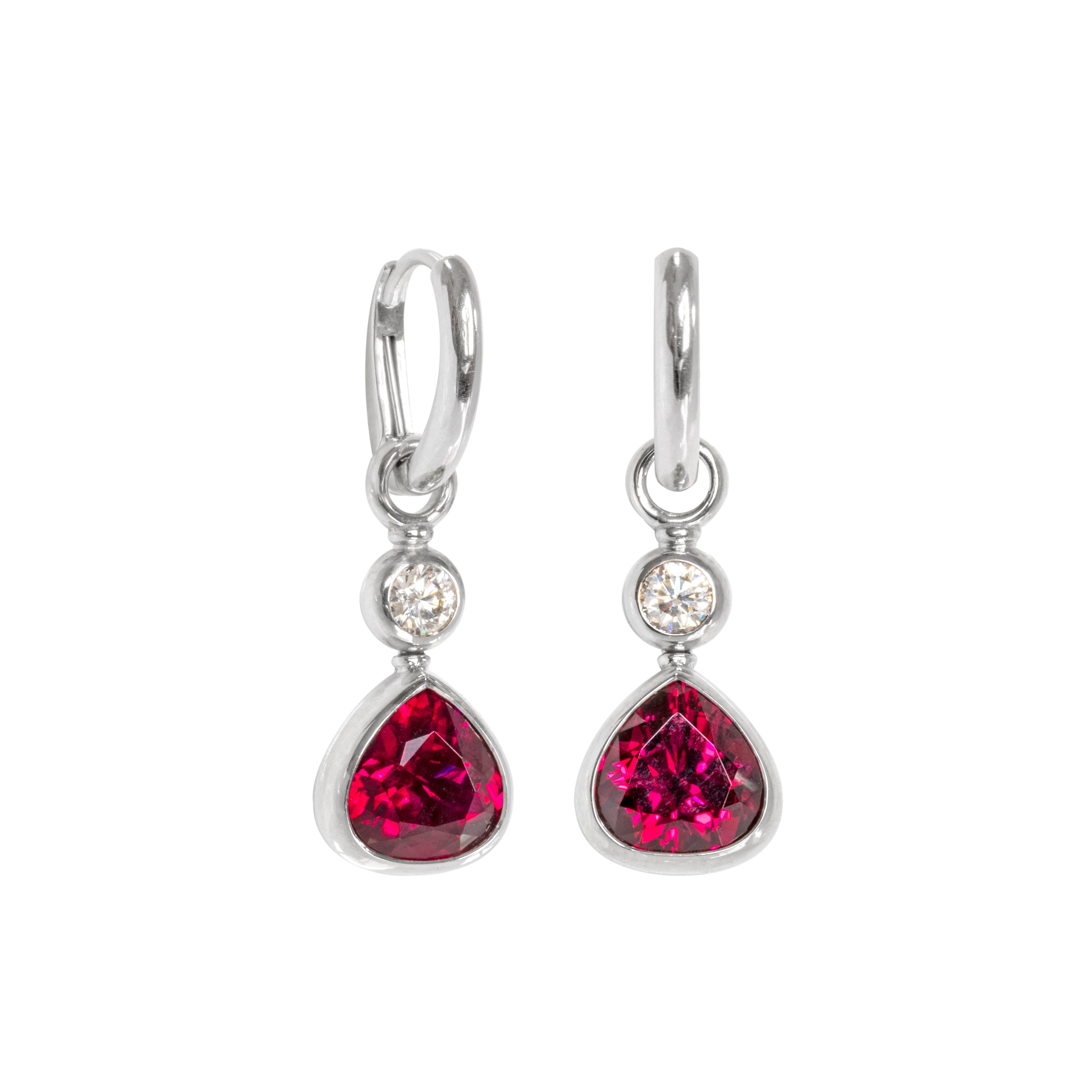 Einhänger: 750 Weißgold mit 2 Brillanten Ø 3,9 mm = 0,46 ct tw vsi und Rubellittropfen 9 mm / 4,96 ct