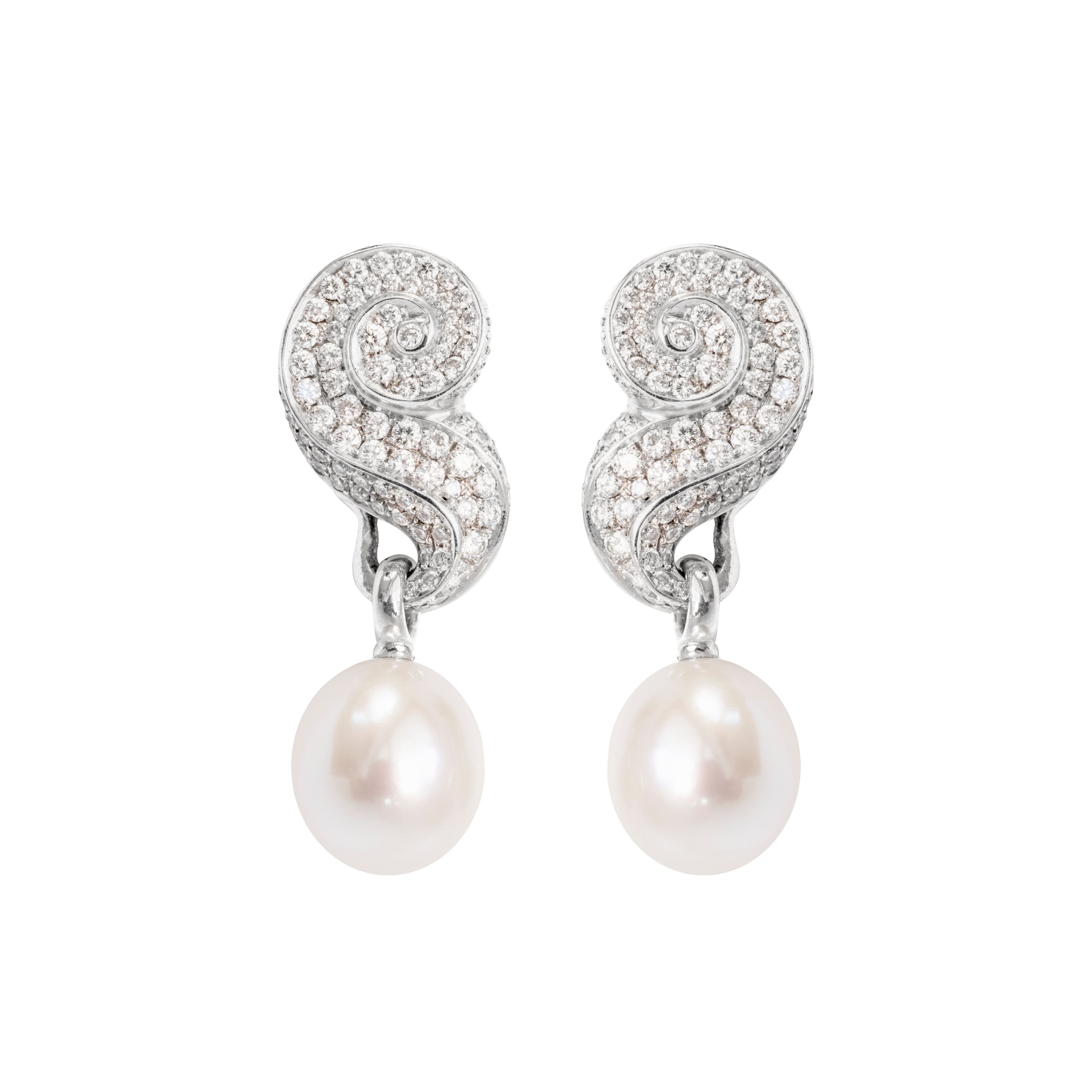 Ohrstecker „Voluten“ mit 268 Brillanten und Perleinhängern