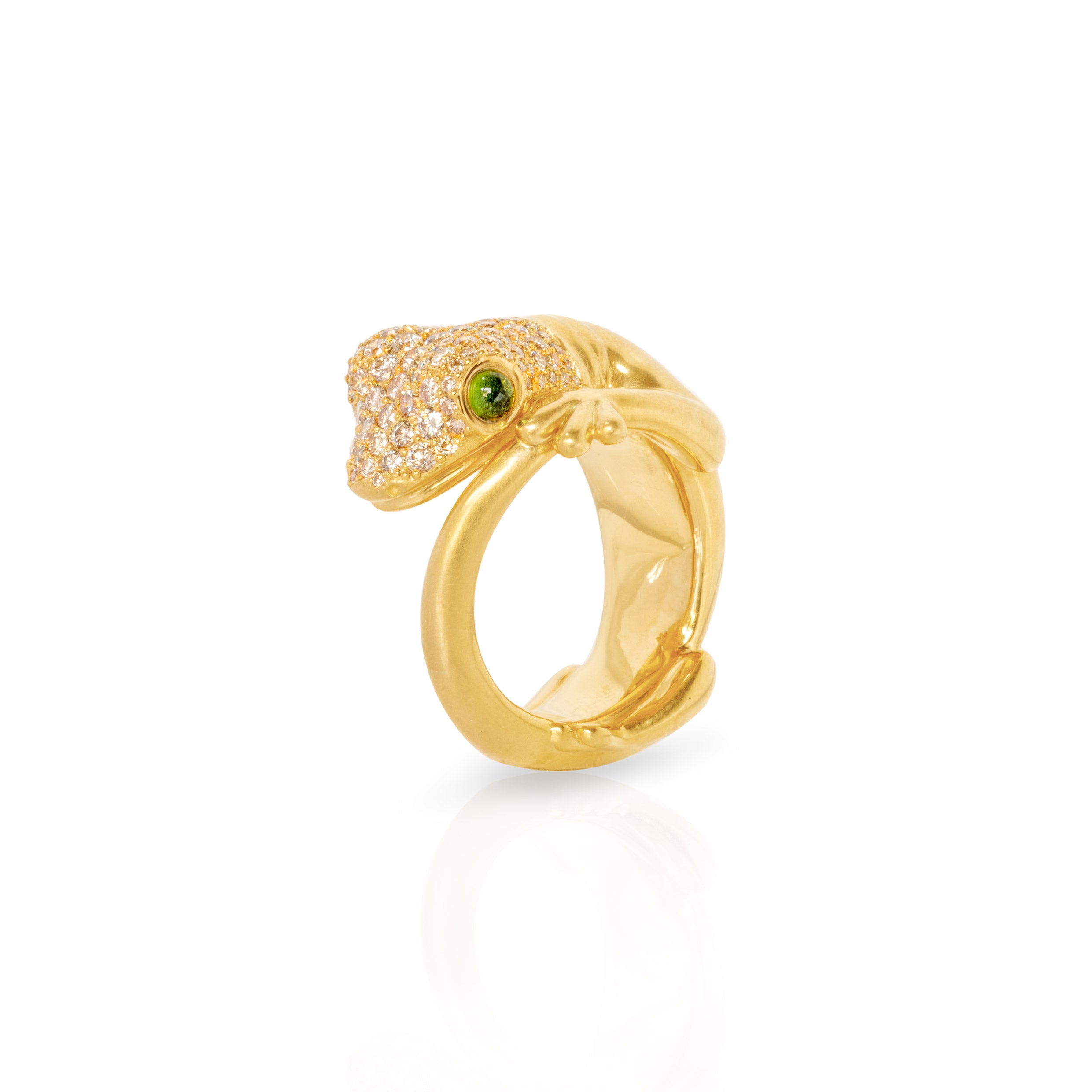 Ring „Gecko“ mit 90 Brillanten und 2 Chromturmalin Cabochons