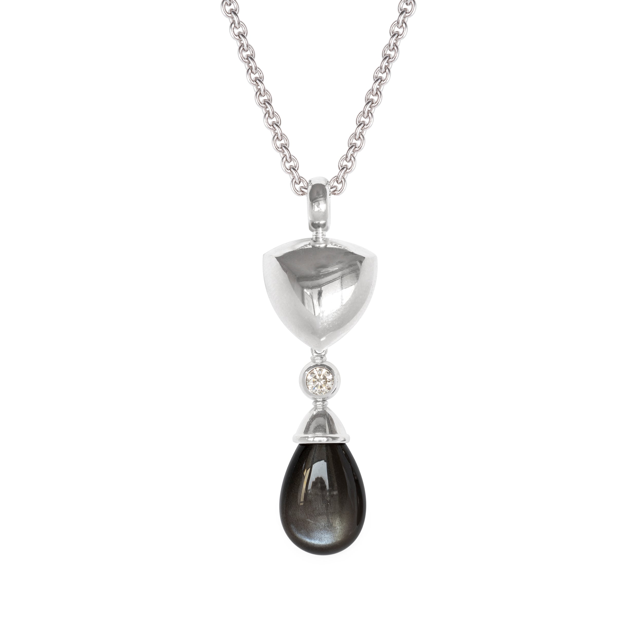 Steine: Ein Brillant 0,24 ct tw vsi Ø 4,0 mm und eine graue Mondsteinpampel 20 x 12,4 mm