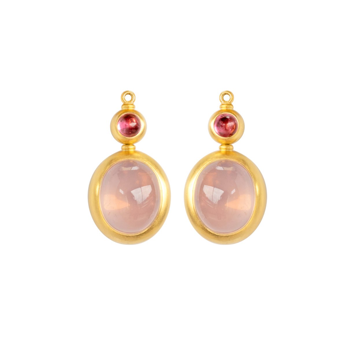 Steine: 2 pink Saphir Cabochons Ø 4 mm und Rosenquarz Cabochons 12 x 10 mm