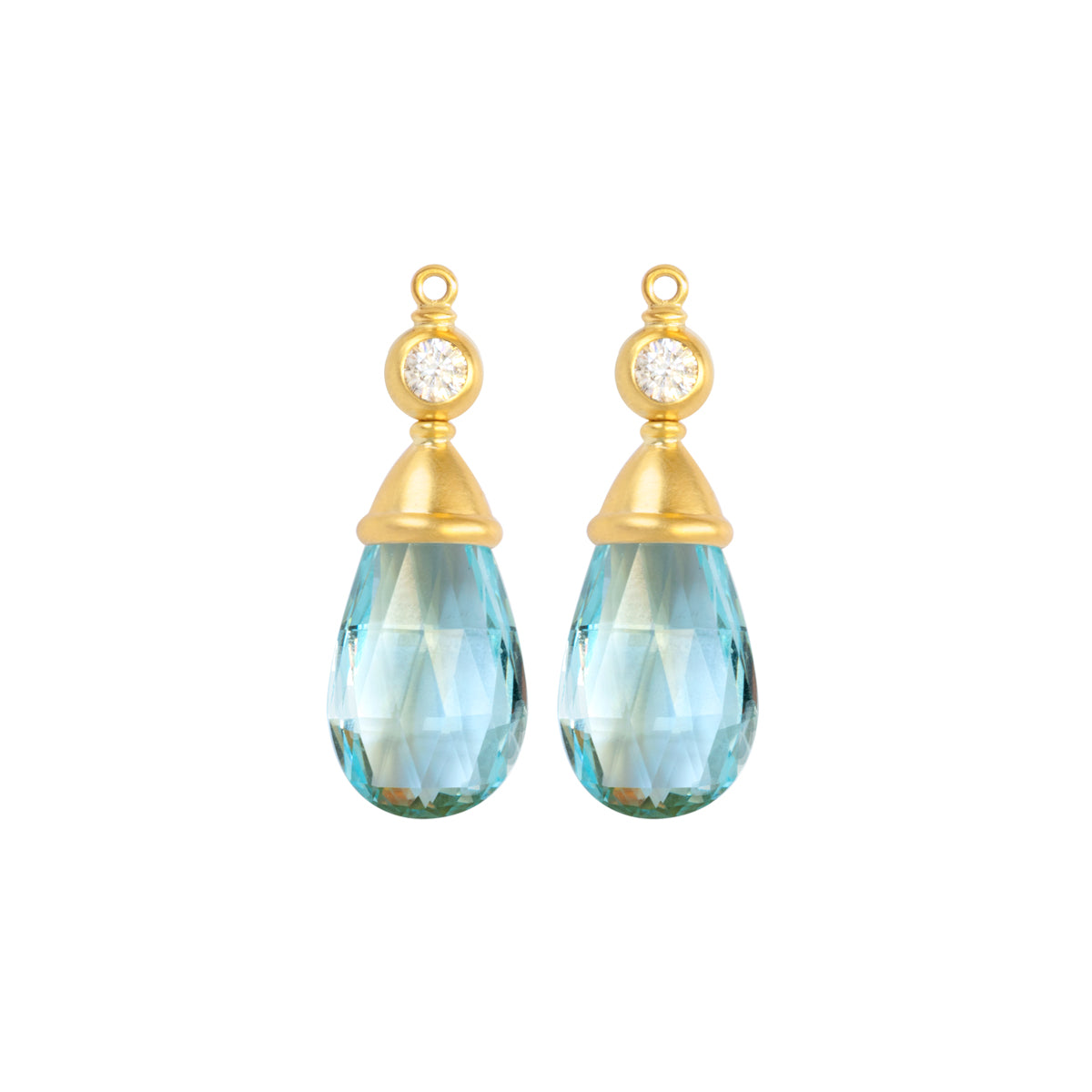 Die handgefertigten Einhänger mit Brillanten und facettierten Aquamarin Tropfen sind eine stilvolle Ergänzung zu unseren Vario Ohrschmuck Oberteilen.