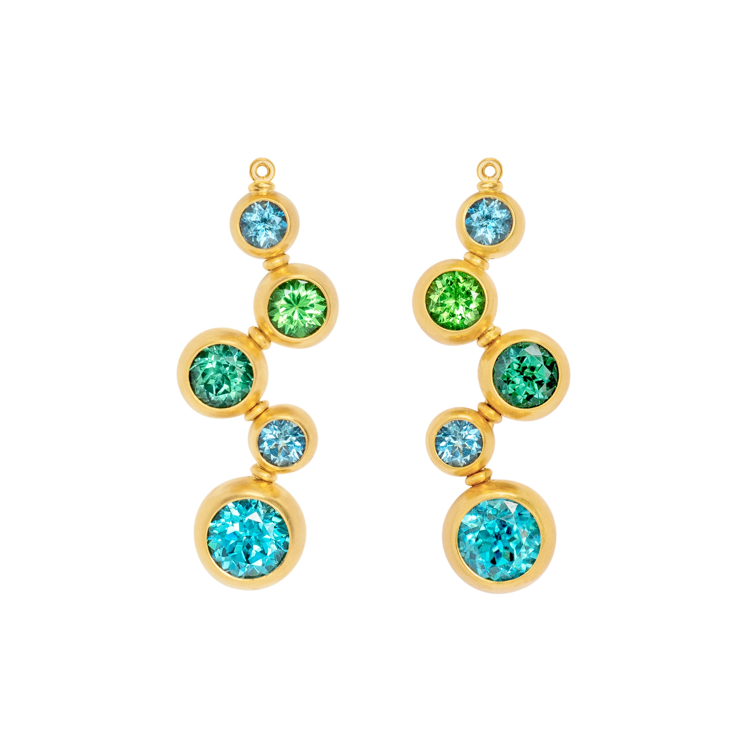 Steine: 2 Starlite Ø 7mm = 4,31 ct, 4 Aquamarine Ø 4 mm = 0,96 ct, 2 Turmaline Ø 5,5 mm = 1,32 ct und 2 Tsavorite Ø 5 mm = 1,15 ct