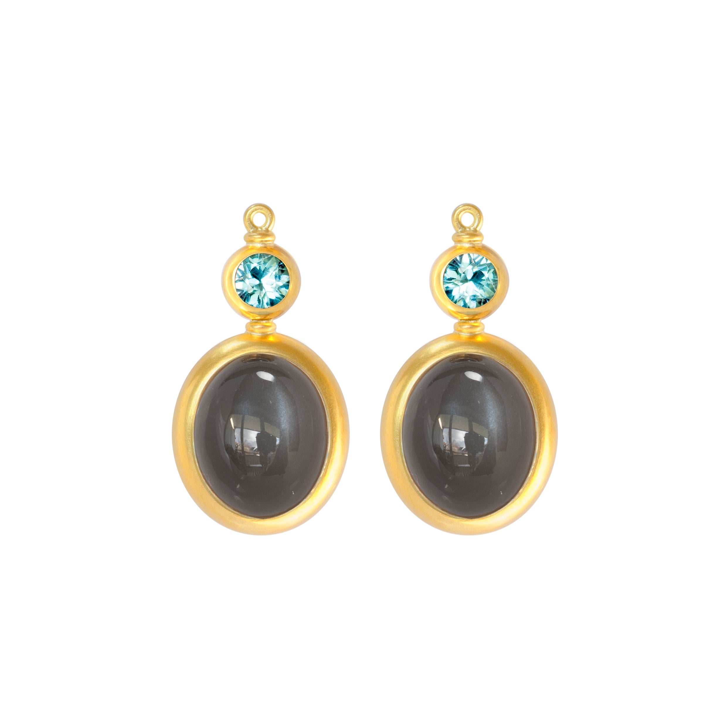 Steine: 2 Starlite 0,76 ct Ø 4 mm rund facettiert und graue Mondstein Cabochons 10,68 ct 12 x 10 mm