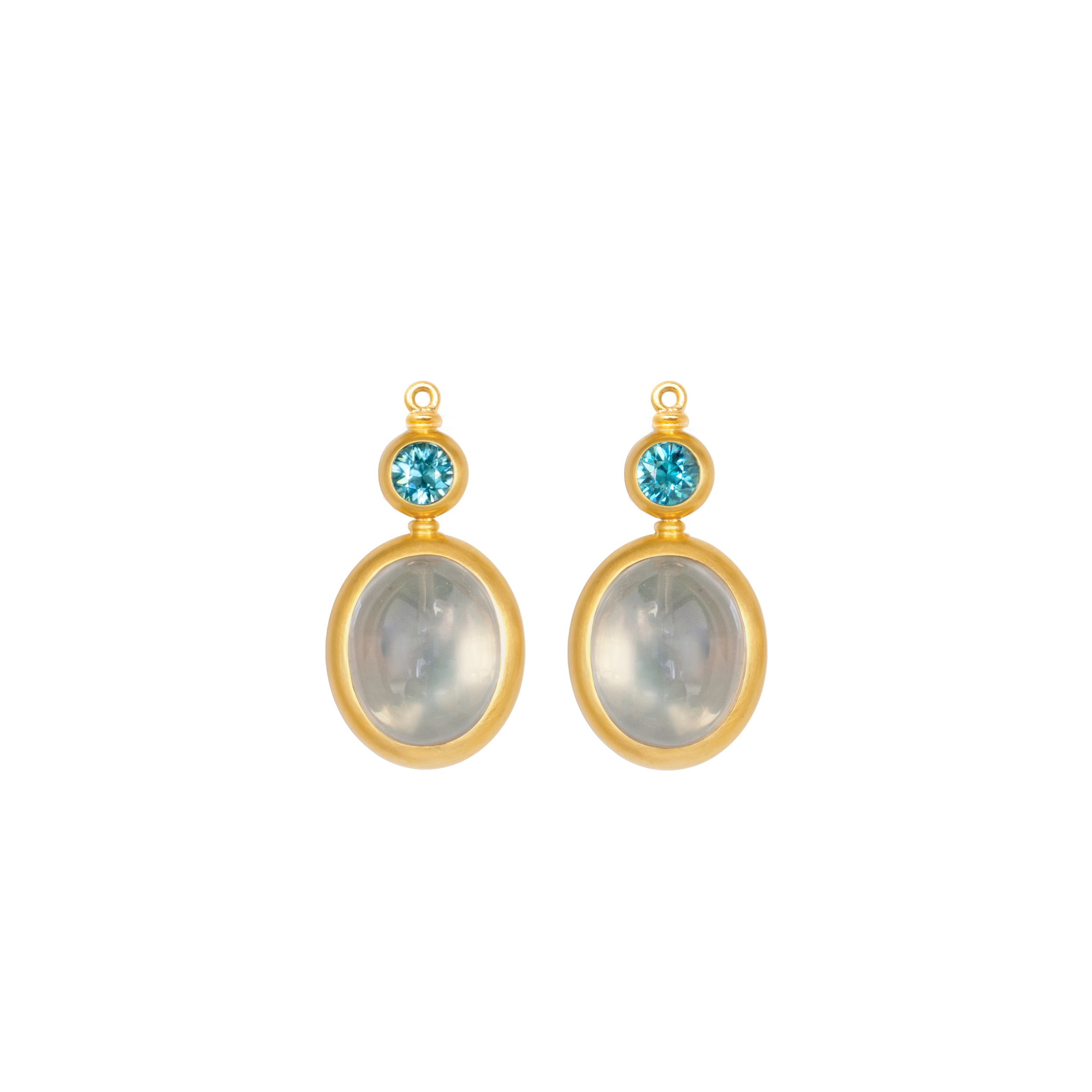 Mit diesen Einhängern aus Blau-grünen Edelsteinen, umrahmt von warmem Gelbgold lassen sich unsere vielfältigen Oberteile der Vario-Kollektion