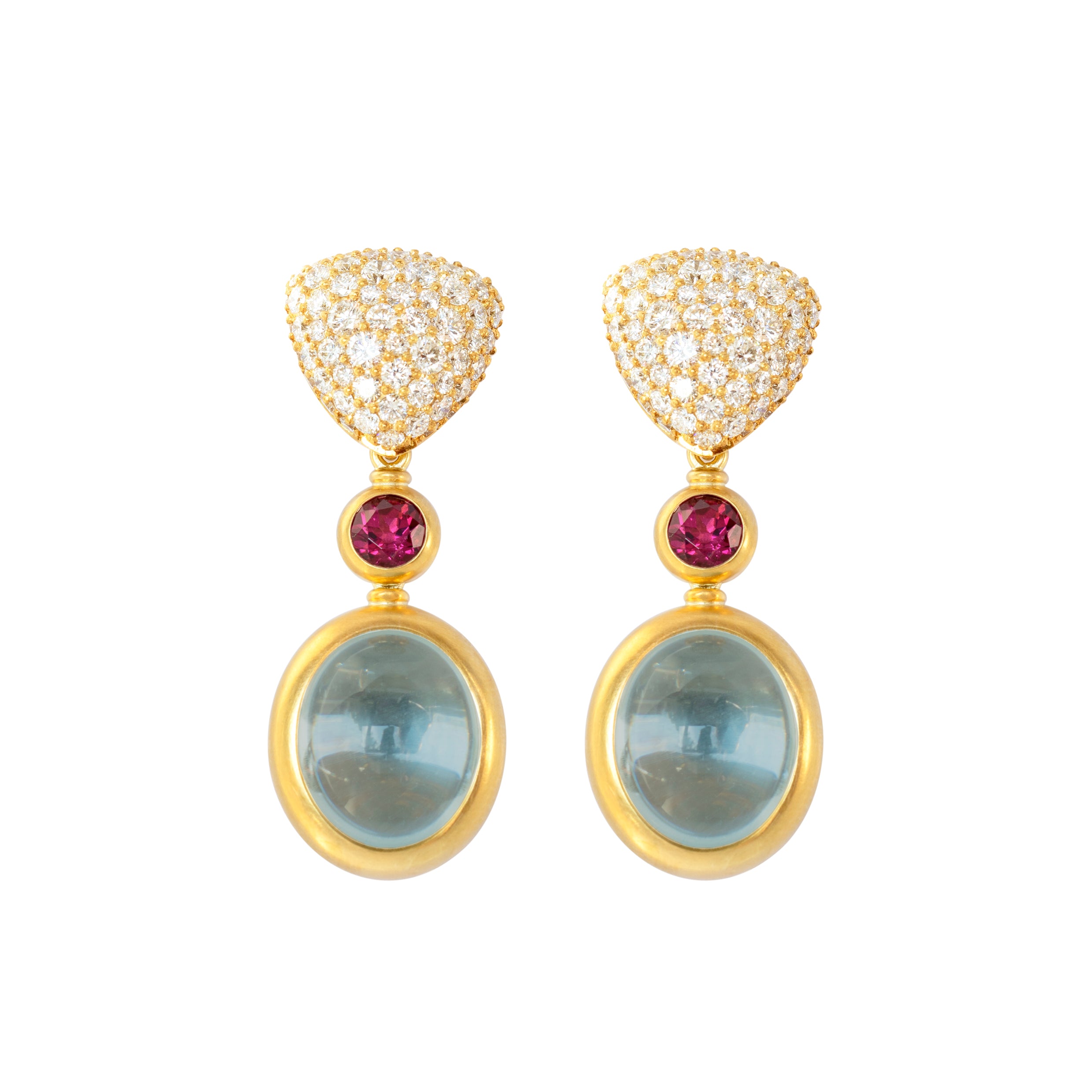 Einhänger: Einhänger mit Rubelliten und Aquamarin Cabochons
