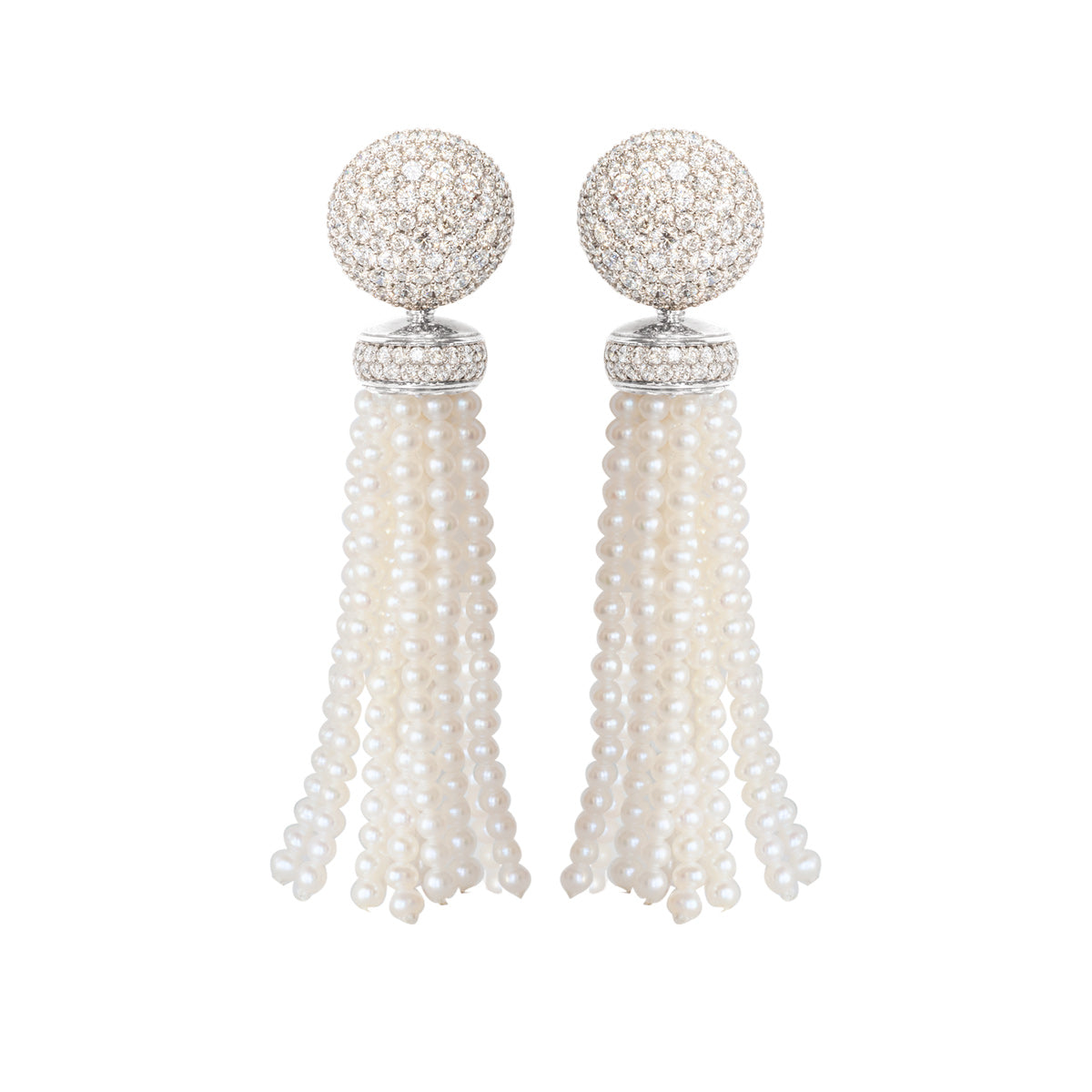 Einhänger: Einhänger mit 88 Brillanten und Süßwasser Perlquasten