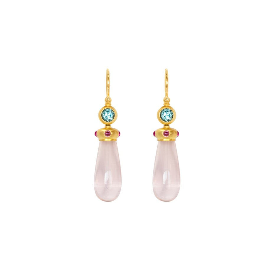 Die zarten Ohrbügel setzen die Einhänger mit den türkis leuchtenden Starliten und