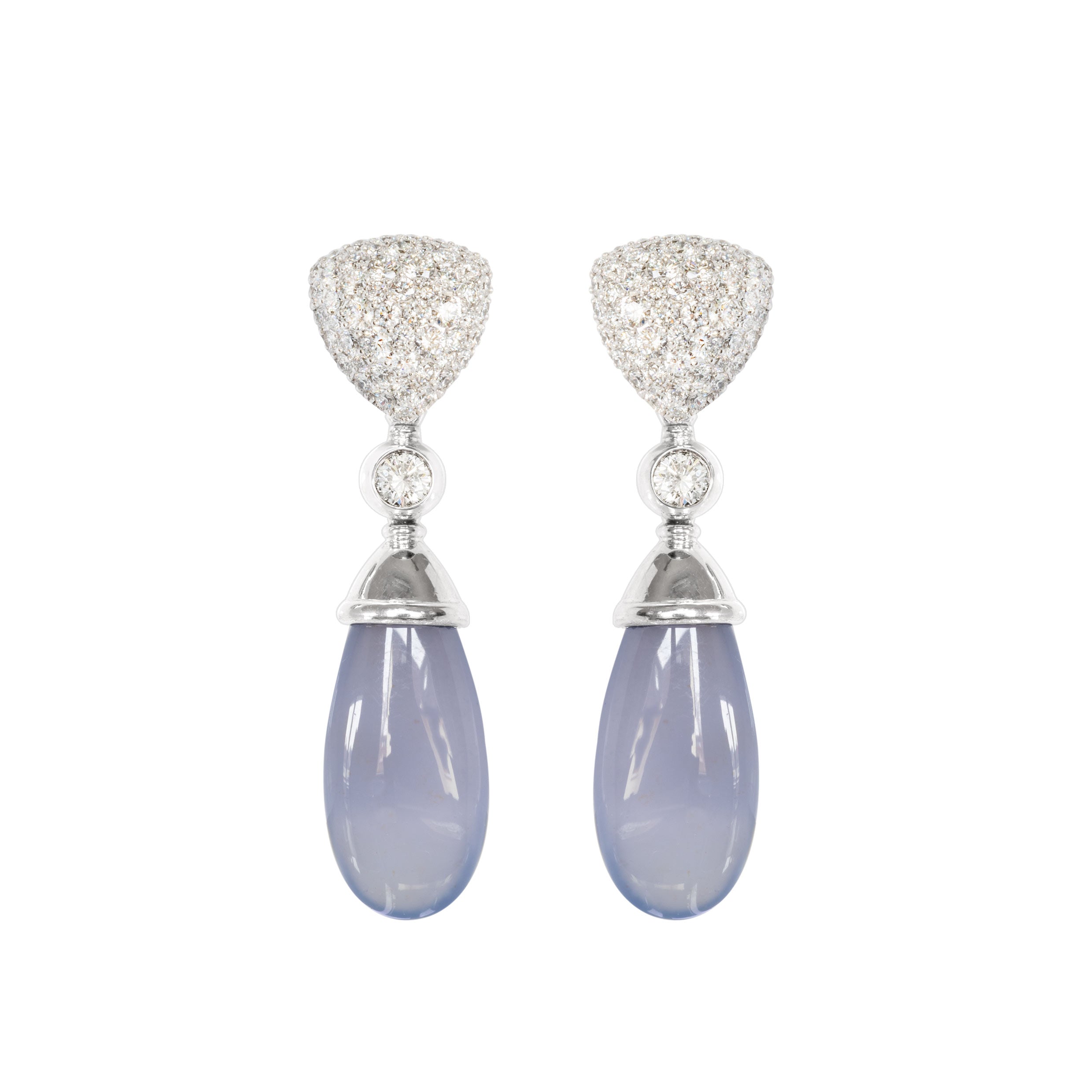 Diese Variante kombiniert ein Feuerwerk an Brillanten mit zartblauen Calcedon Pampeln.