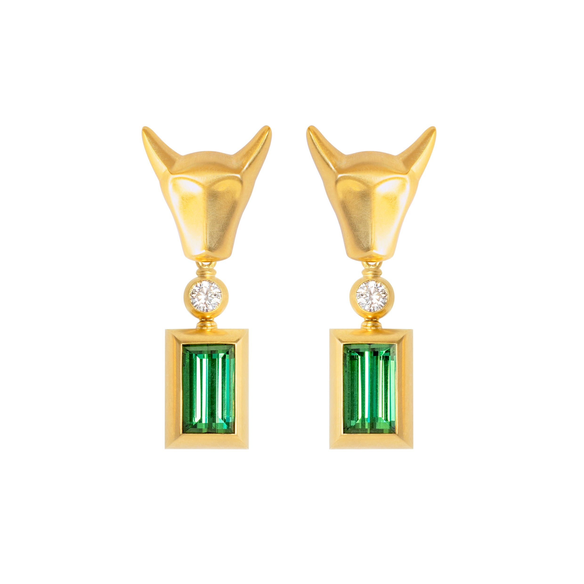 Die Oberteile sind in Form von stilisierten Stierköpfen gestaltet, die mit jedem Tragen ein Gefühl von Stärke und Macht verleihen. Die eckige Form der Einhänger bilden einen reizvollen Kontrast.